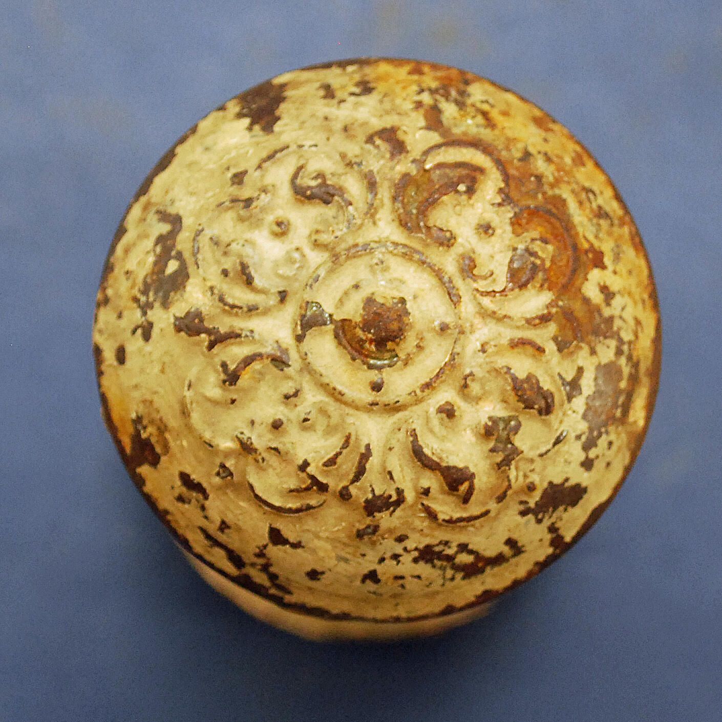 Design Name: Manufacturer: Niles-Chicago Hdwr Co. Style: Material: Manufacturing Method: Stamped Surface Finish: Painted VDA Classification: Fourfold VDA Number: H - 466 Shape: Domed Patent Specifics: Lock Type (If Applicable): Inscription/Makers Mark: Inscription Text: Comments: