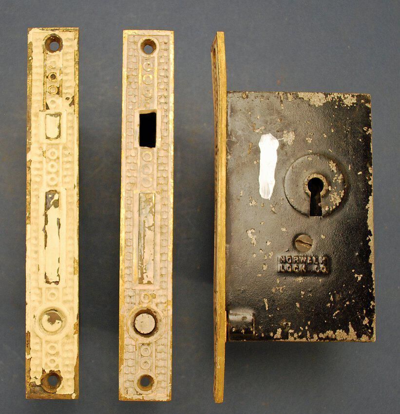 Comments: One Male / Female Matched Set. One Male Cast Iron Lock Case. Single ____ Cracked Case. Missing Piece. An Exception to Ornamental Bronze Face Plates.Lexicon