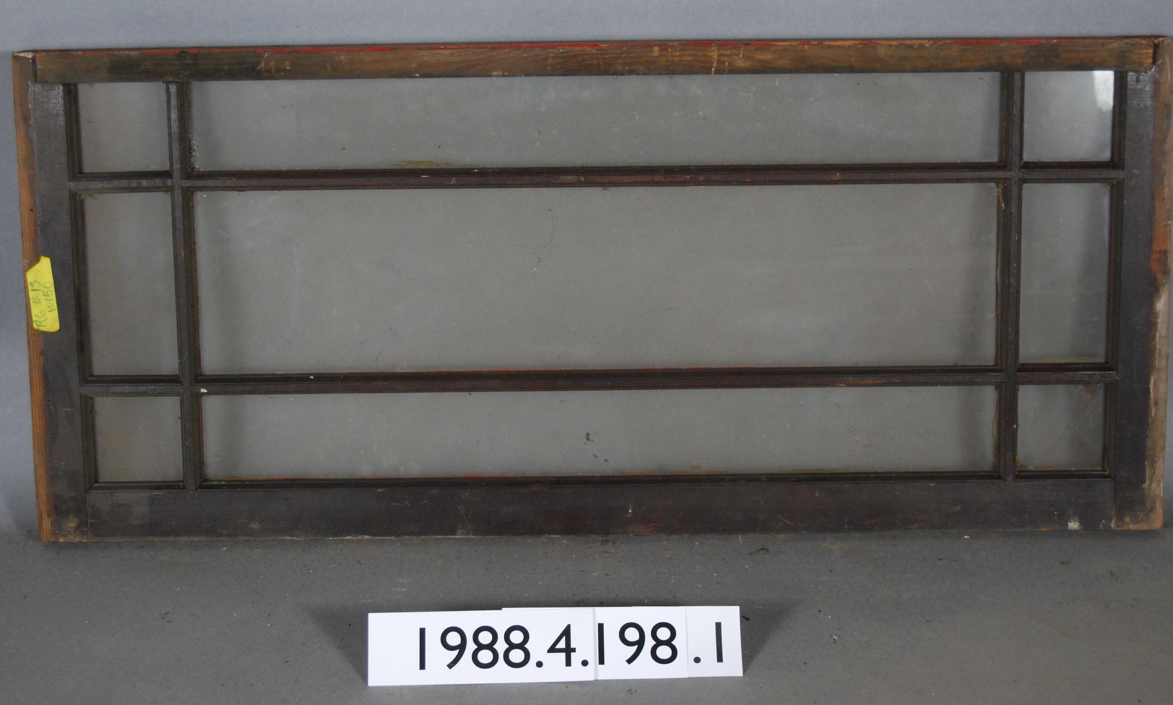Rectangular. Mortice and tenon and coped joints. Segmented nine openings with complete glass panes. Divided by muntins.