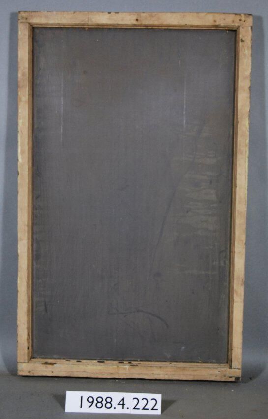Rectangular. Mortice and tenon and coped joints. Colorless translucent ribbed glass pane. Complete. Exterior of sash is faux marbelized.