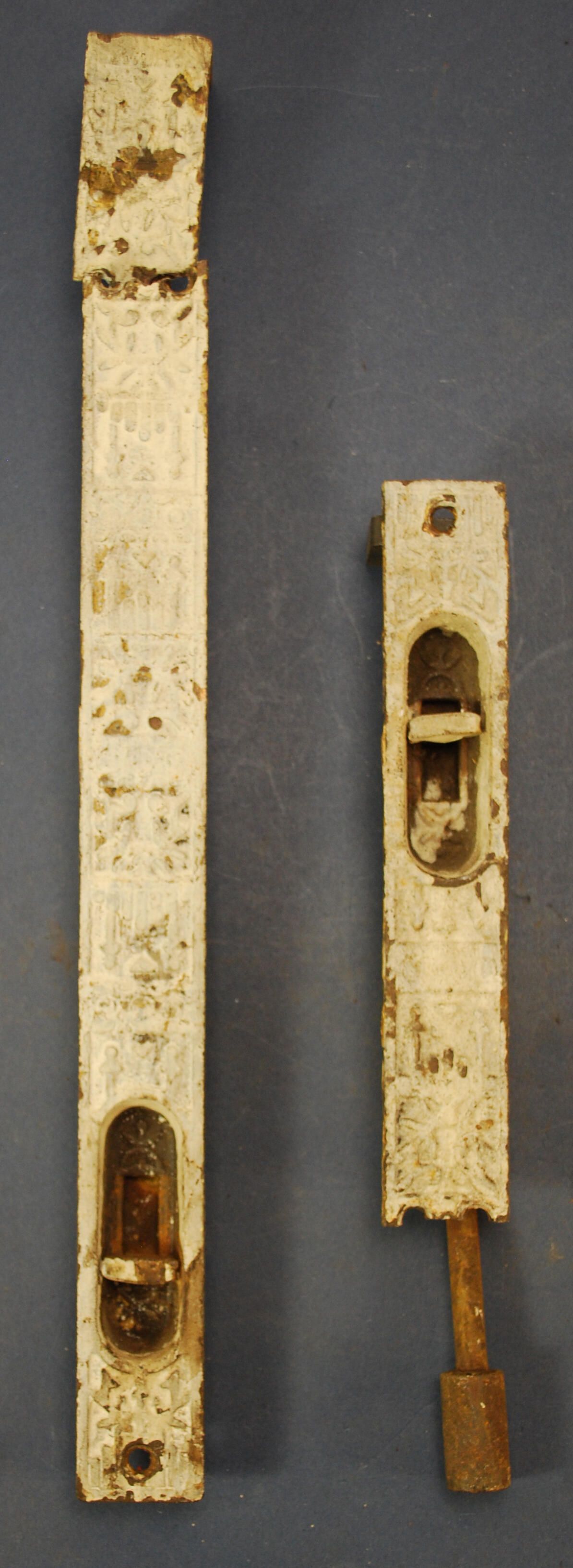Comments: Missing Strike Plates. Smaller Bolt is Truncated (see Larger Bolt). "846" on Verso of Lower Bolt.