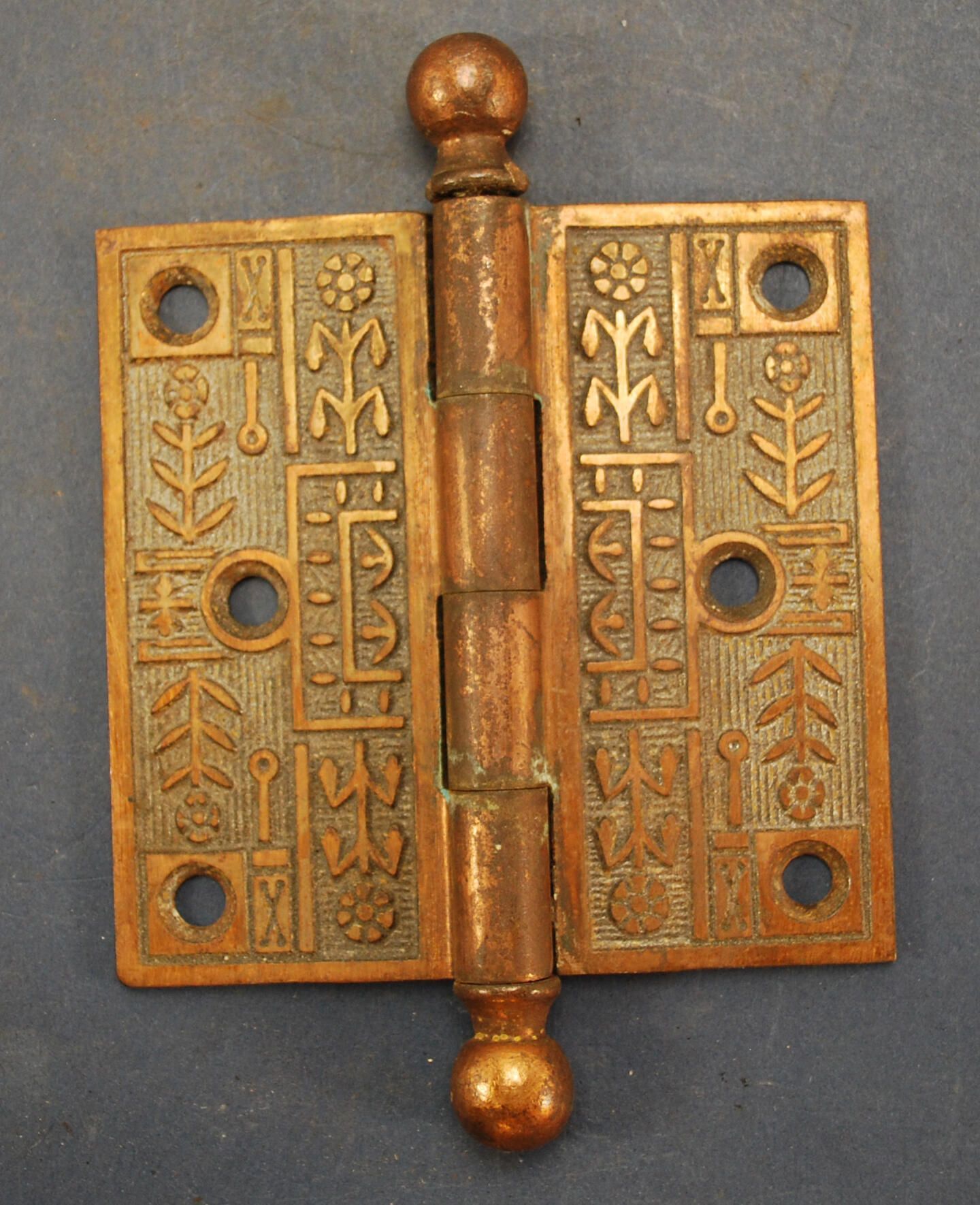 Design Name: Windsor Manufacturer: Reading Hdwr. Co. Style: Aesthetic Material: Bronze Manufacturing Method: Cast Surface Finish: Plated / Bronzed / Japanned VDA Classification: VDA Number: Shape: Patent Specifics: Lock Type (If Applicable): Inscription/Makers Mark: Inscription Text: "3 1/2 x 3 1/2" Comments: Ball-Tipped.