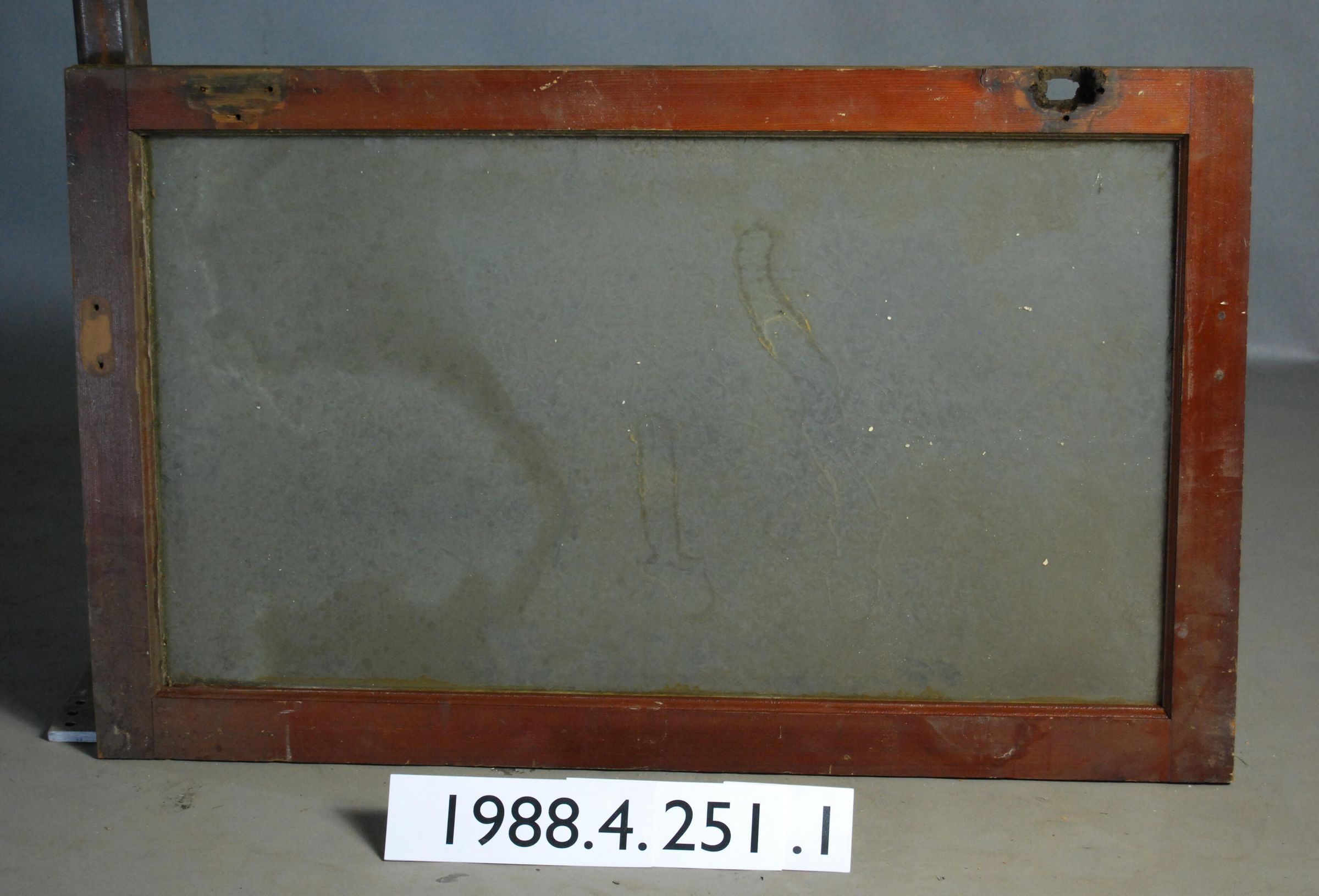 Rectangular. Mortice and tenon and coped joints. Complete glue chipped glass pane. Hinges are missing. Has hole in wood sash.