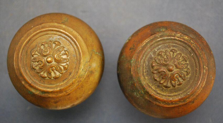 Design Name: Roland Manufacturer: Russell & Erwin Mfg. Co. Style: Louis XVI Material: Brass Manufacturing Method: Wrought / Stamped Surface Finish: Aged / Unpolished VDA Classification: Consentric Symmetry VDA Number: M - 140 Shape: Domed With Sunken Center Patent Specifics: Lock Type (If Applicable): Inscription/Makers Mark: Inscription Text: Comments: