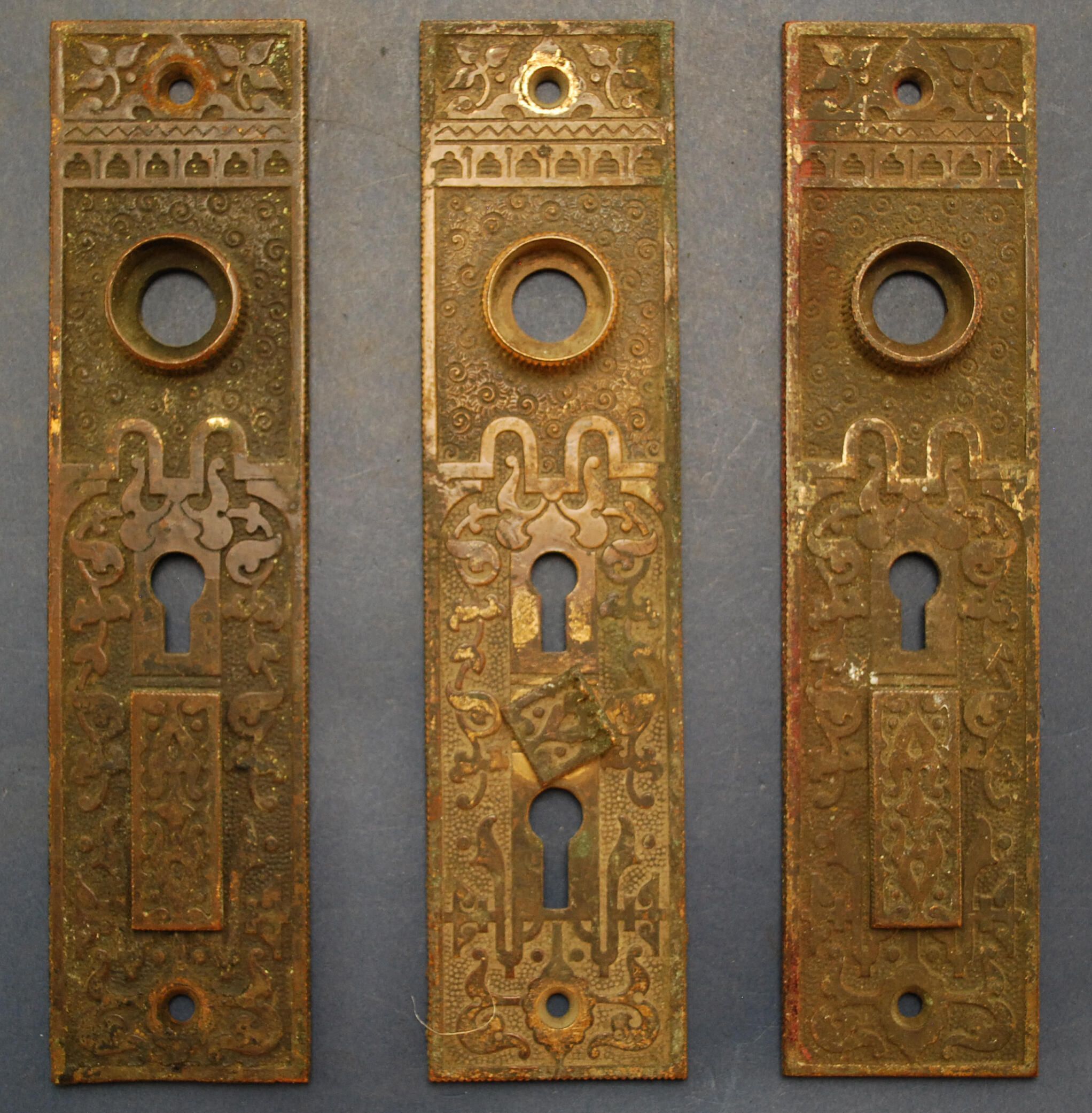 Comments: One escutcheon has damaged keyhole cover, exterior entry door, dual keyhole.Lexicon