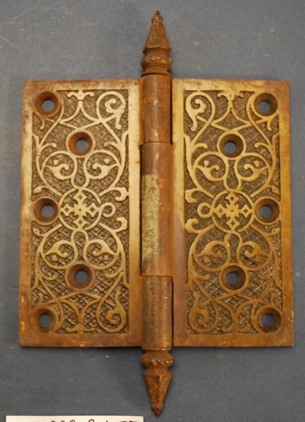 Design Name: Mazarin Manufacturer: Russell & Erwin Mfg. Co. Style: Neo-Grec Material: Iron Manufacturing Method: Cast Surface Finish: Plated / Bronze VDA Classification: VDA Number: Shape: Patent Specifics: Lock Type (If Applicable): Inscription/Makers Mark: Inscription Text: Comments: .Steeple Finials. 4 1/2 x 5 1/2. Three Knuckle. Fixed Joint.