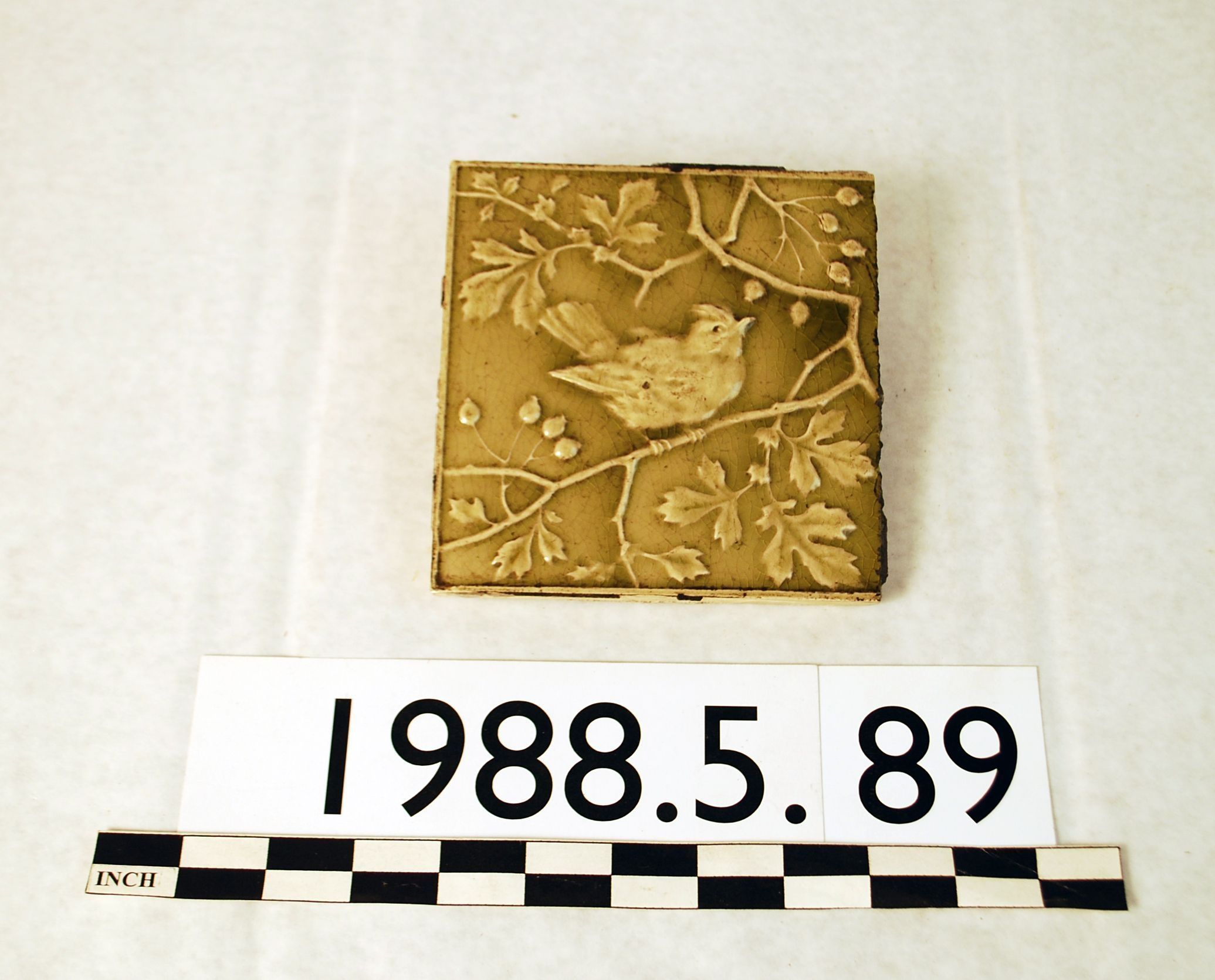 Dust Pressed Molded Glazed Tile Botanical Style "Birds in Foliage"