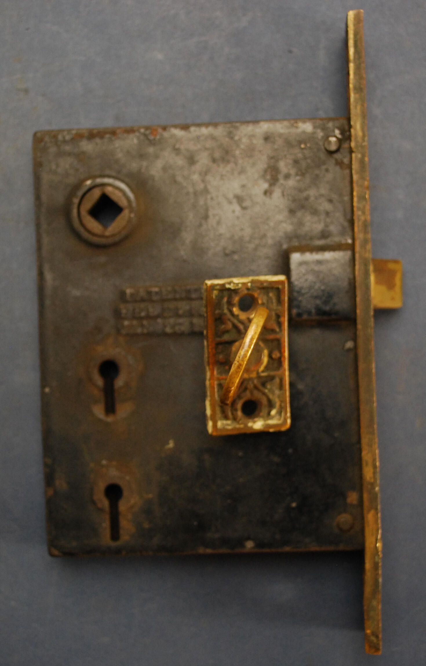 Comments: Goes with doorknob 1988.3.226, has bronze ornamental faceplate, bronze thumb turn, dual key hole, entrance lock.