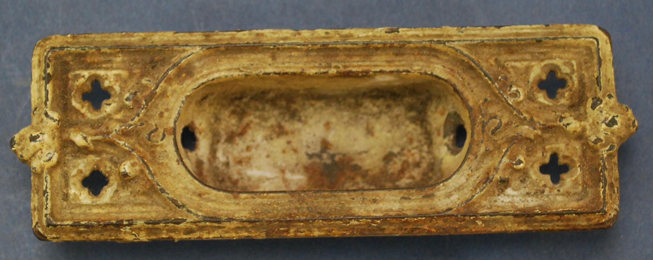 Design Name: Manufacturer: Sargent & Co. Style: Gothic Revival Material: Iron Manufacturing Method: Cast Surface Finish: Painted VDA Classification: VDA Number: Shape: Patent Specifics: Lock Type (If Applicable): Inscription/Makers Mark: S & Co. Inscription Text: "882" 1887 Comments: Flush type