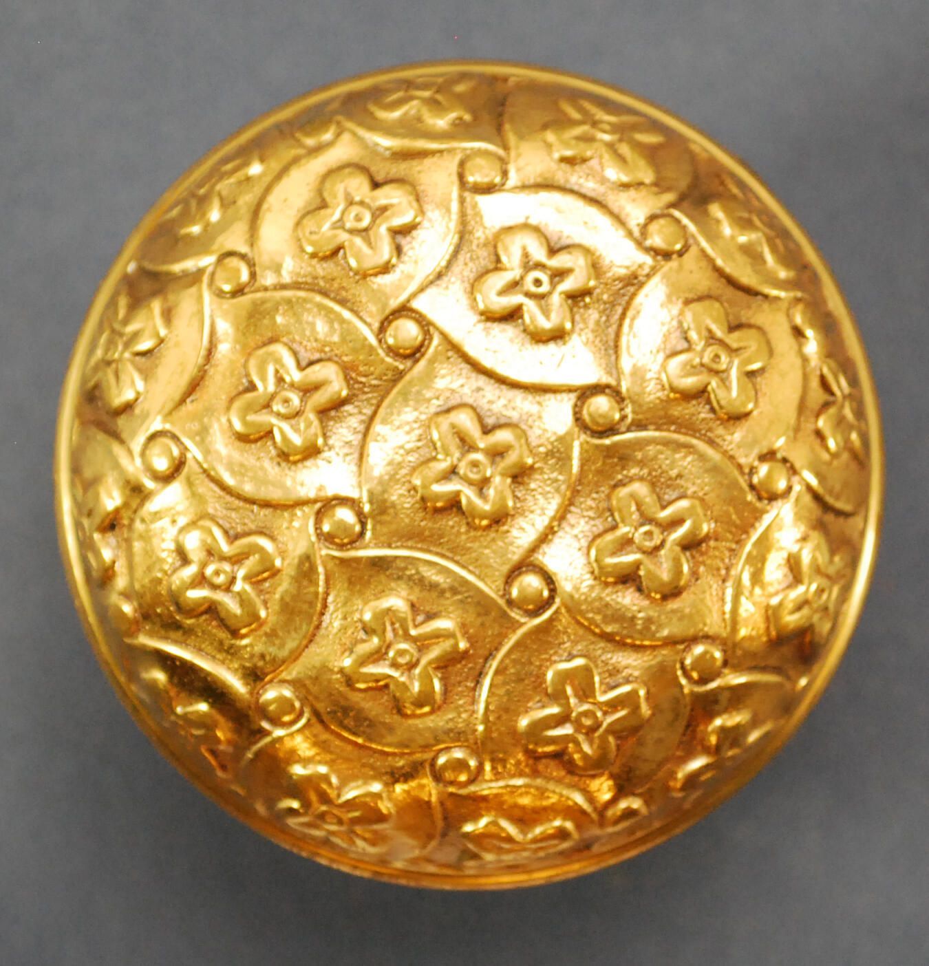 Design Name: Madras Design Manufacturer: Yale & Towne Mfg. Co. Style: Aesthetic Material: Bronze Manufacturing Method: Cast Surface Finish: Polished VDA Classification: Field & Diaper Patterns VDA Number: D-122 Shape: Domed Patent Specifics: Lock Type (If Applicable): Inscription/Makers Mark: Inscription Text: Comments: