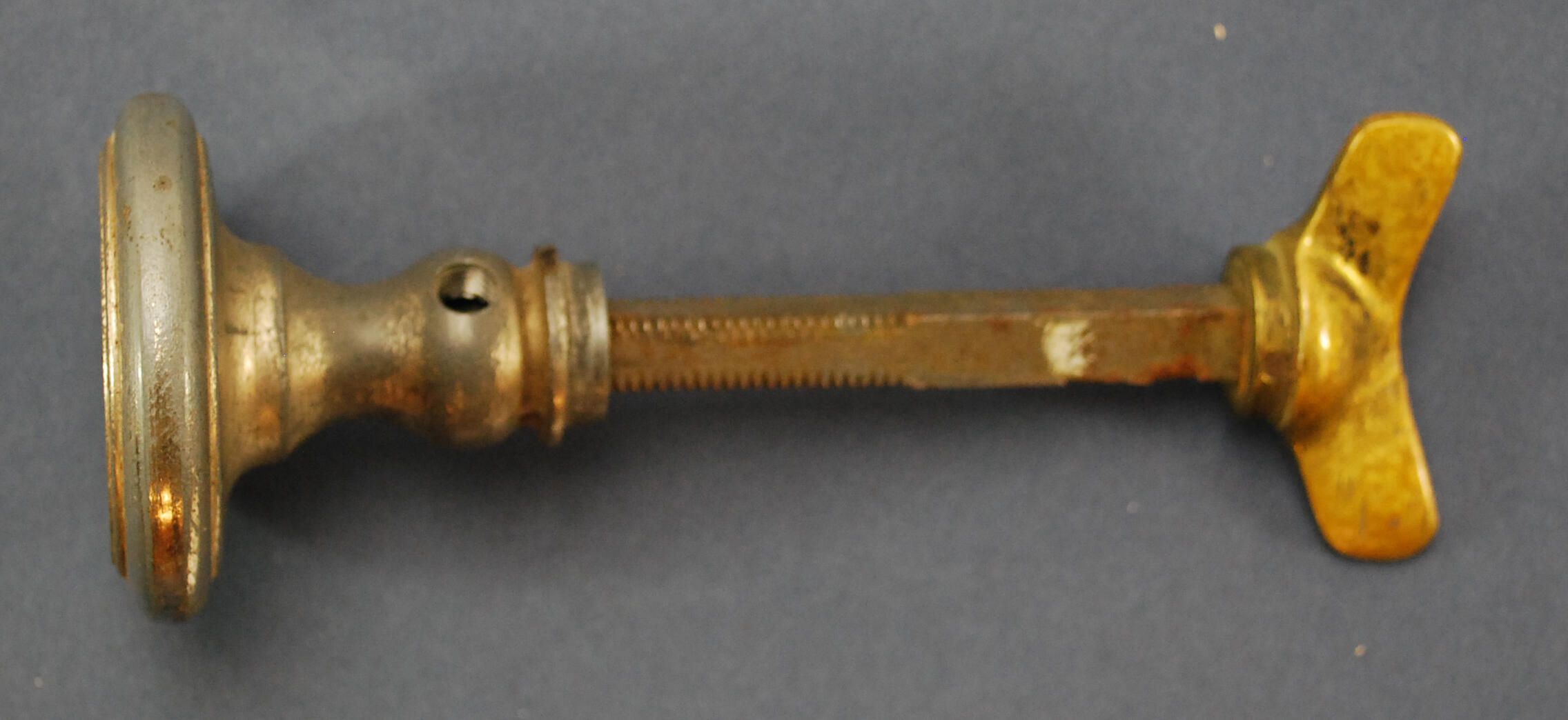 Design Name: Manufacturer: unknown Style: Streamline / Moderne Material: White metal / Bronze (later) Manufacturing Method: Cast Surface Finish: Nickel plated VDA Classification: VDA Number: Shape: Sunken center Patent Specifics: Lock Type (If Applicable): Inscription/Makers Mark: Inscription Text: Comments: Rotating thumb latch, doorknob and thumb latch mounted on spindle.
