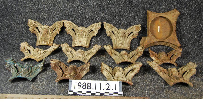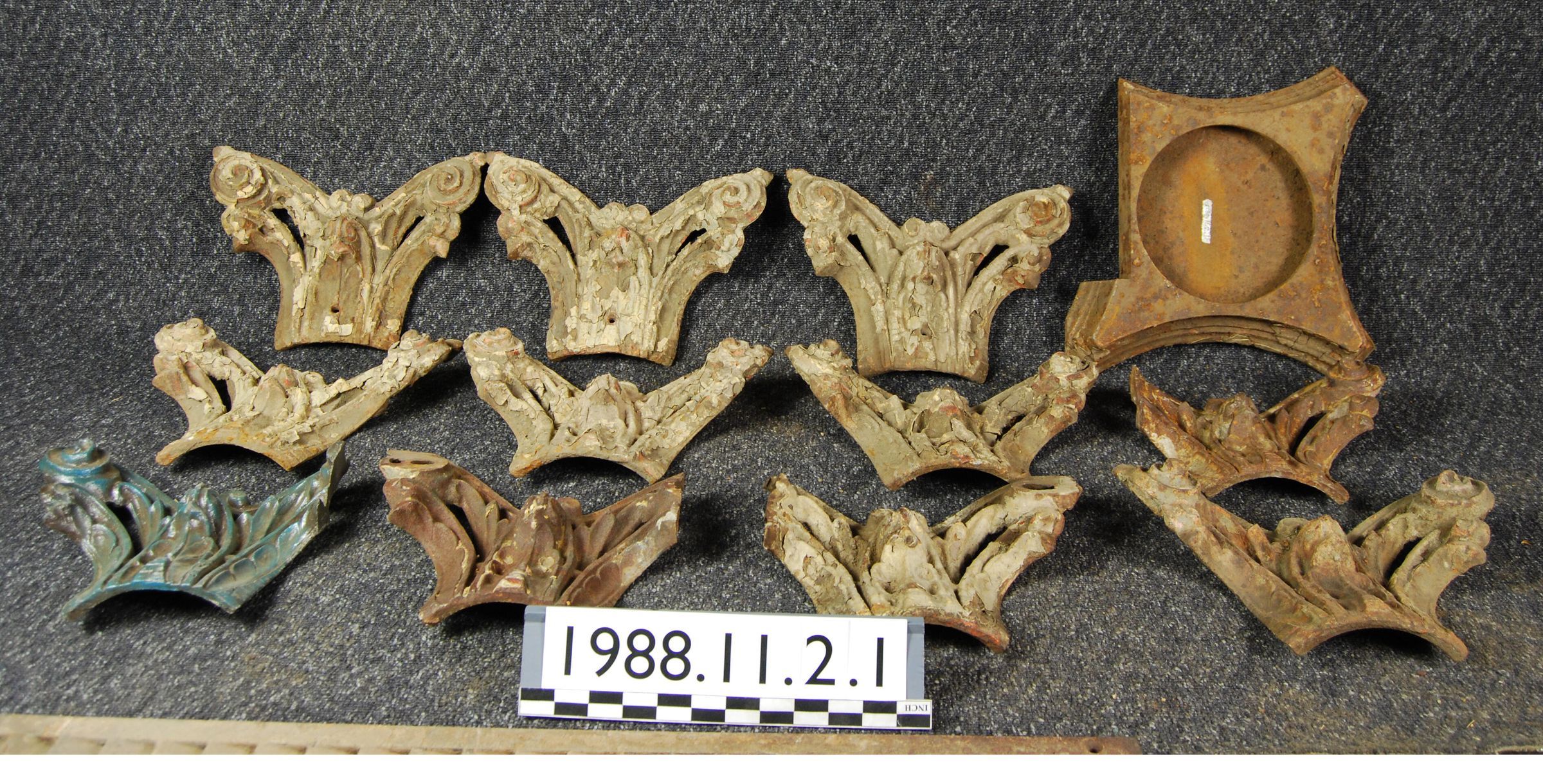 Cast iron capital ornaments. Originally installed on Abington Building front facade, fifth floor columns.
