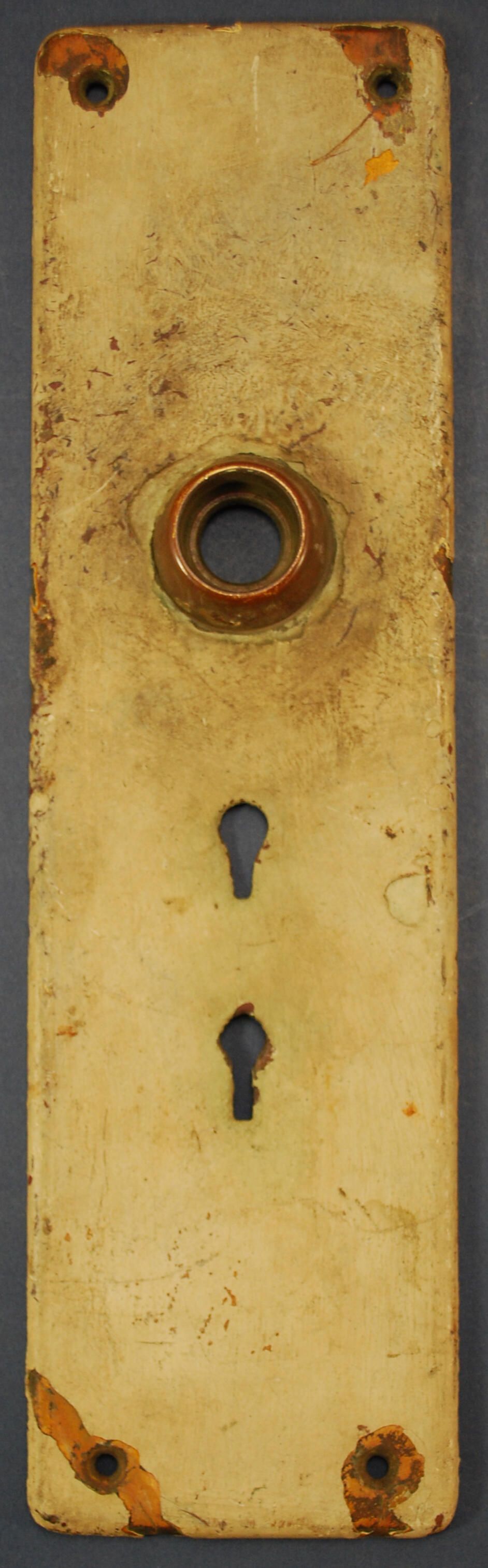 Comments: Dual key hole entry door escutcheon. Bent, later painter.Lexicon