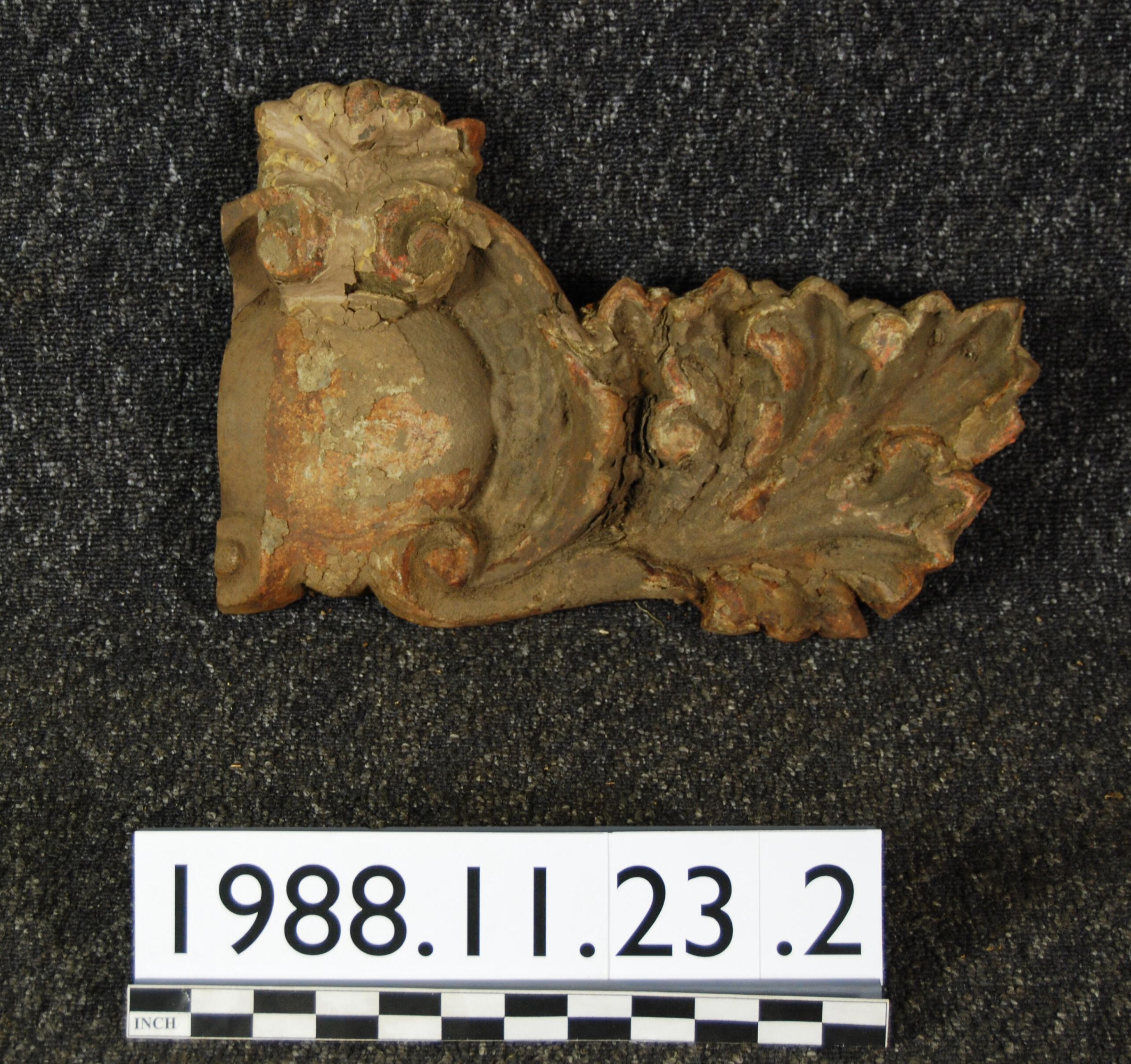 Cast iron ornament. Originally installed on Abington Building front facade third floor capital..