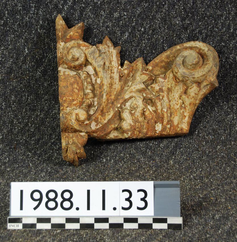 Cast iron ornament. Originally installed on Abington Building fifth floor capital.