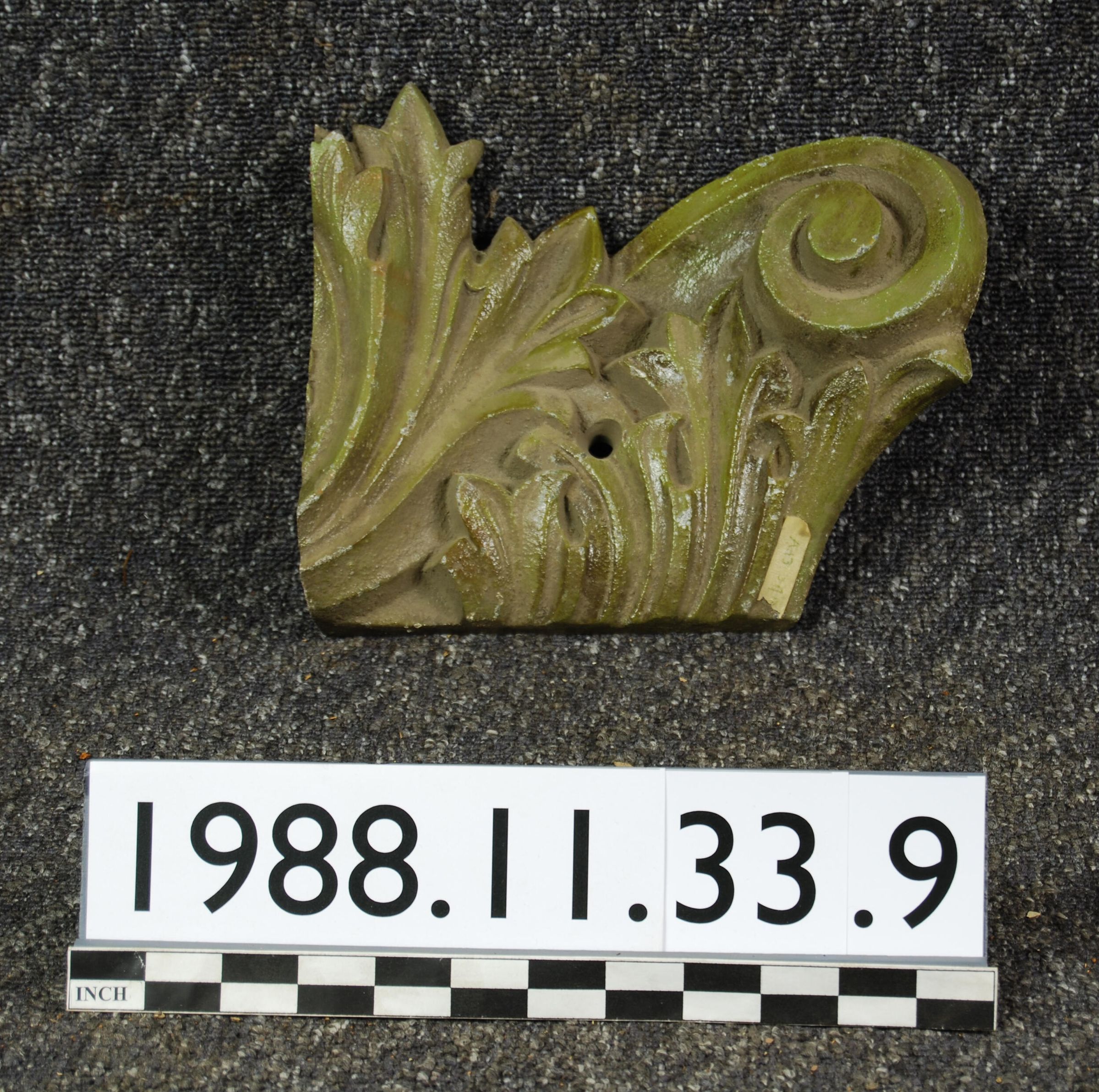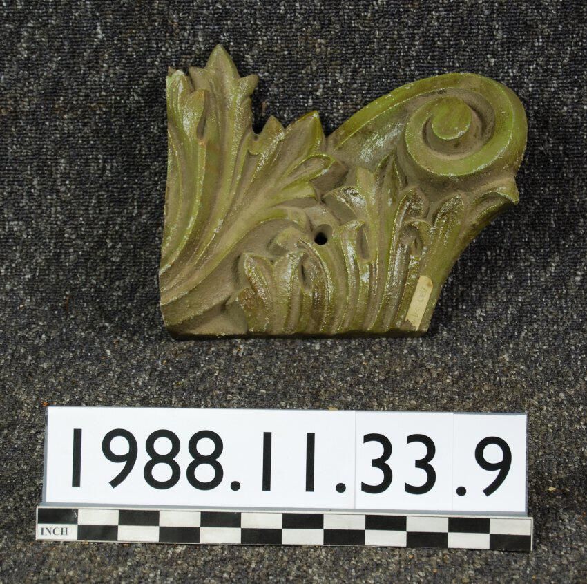 Cast iron ornament. Originally installed on Abington Building fifth floor capital.