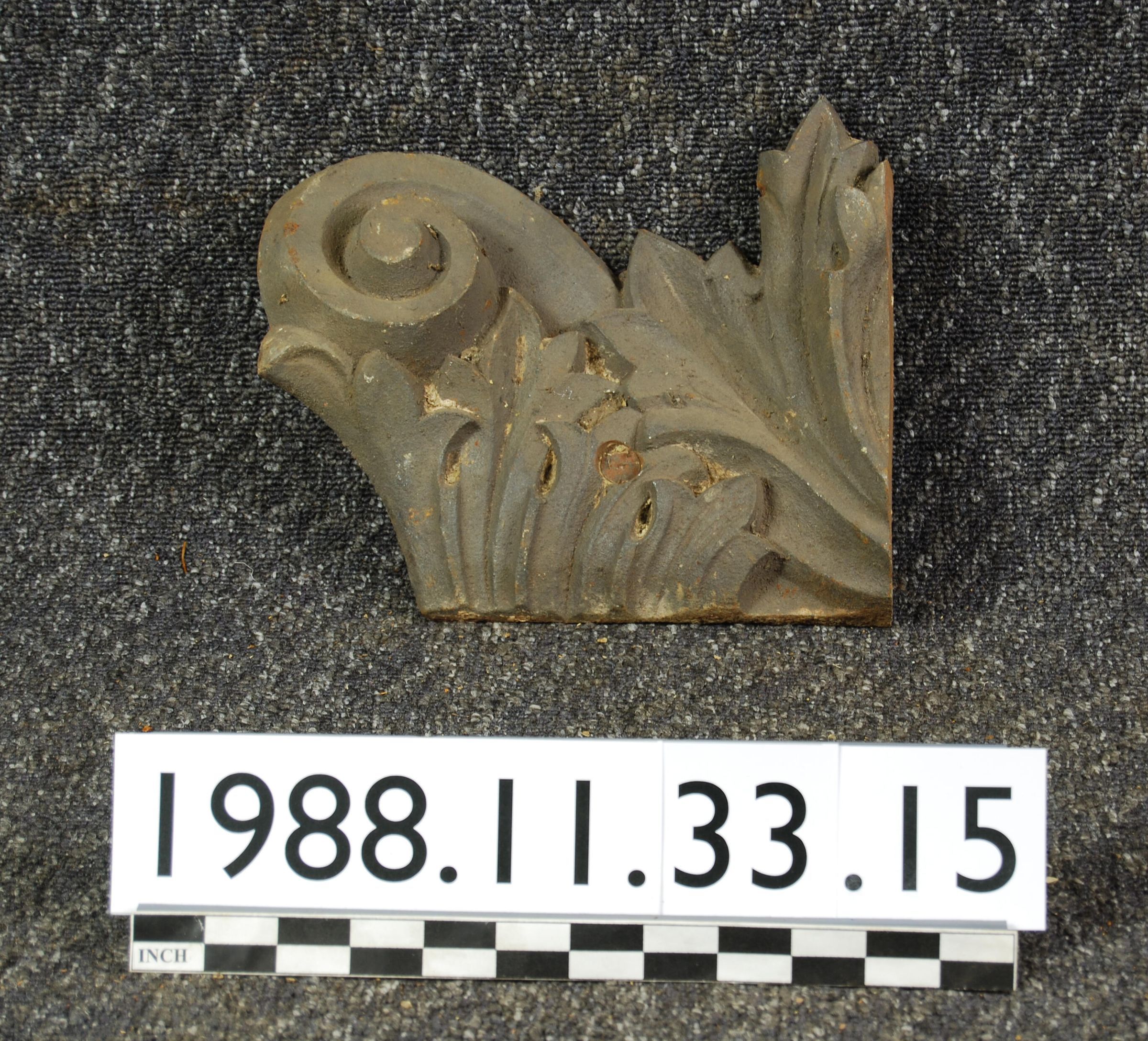Cast iron ornament. Originally installed on Abington Building fifth floor capital.