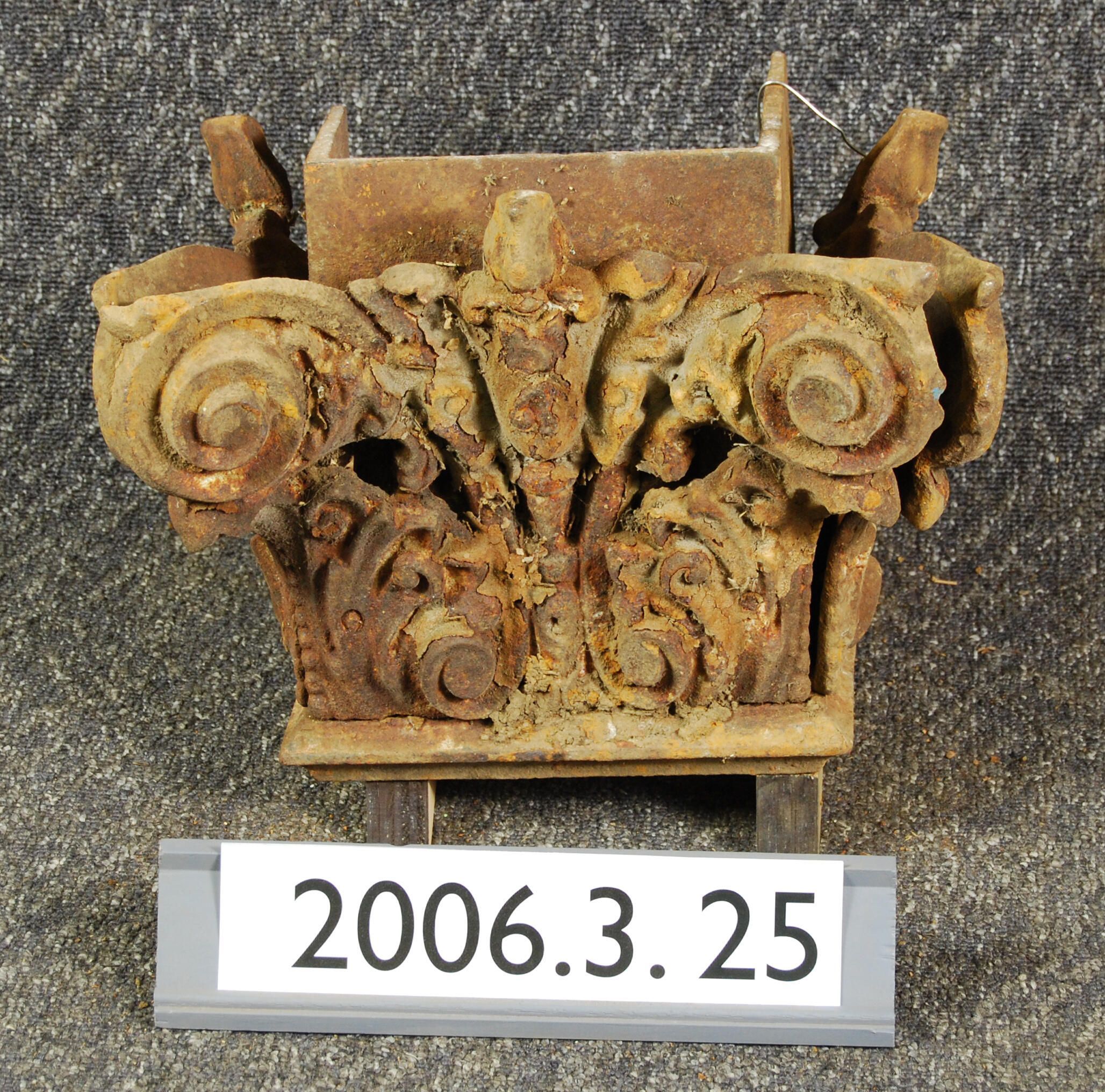Cast iron capital. Originally installed on 1883 Smith and Watson Building second or third floor column.