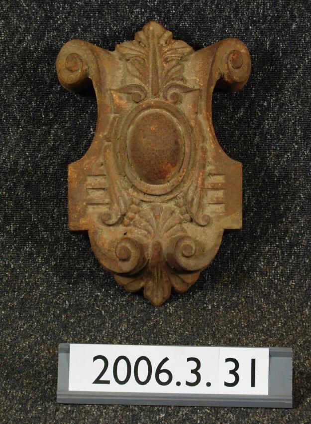 Cast iron cartouche from unidentified building.