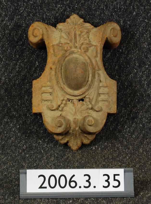 Cast iron cartouche from unidentified building.