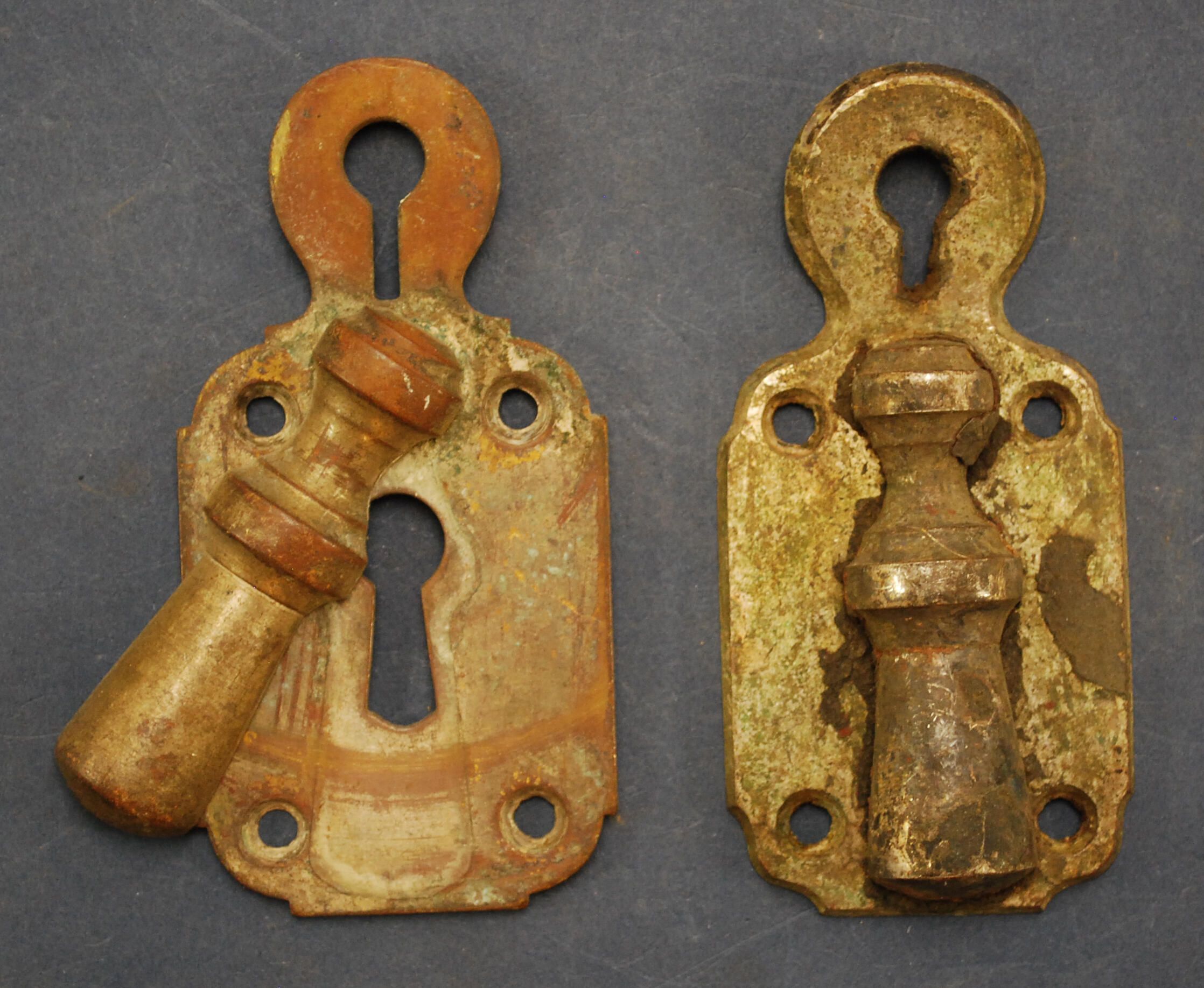 Comments: Similar but not matched. Each has dual key holdes and drop swivel key hole cover. Could be made by Russell & Erwin?Lexicon