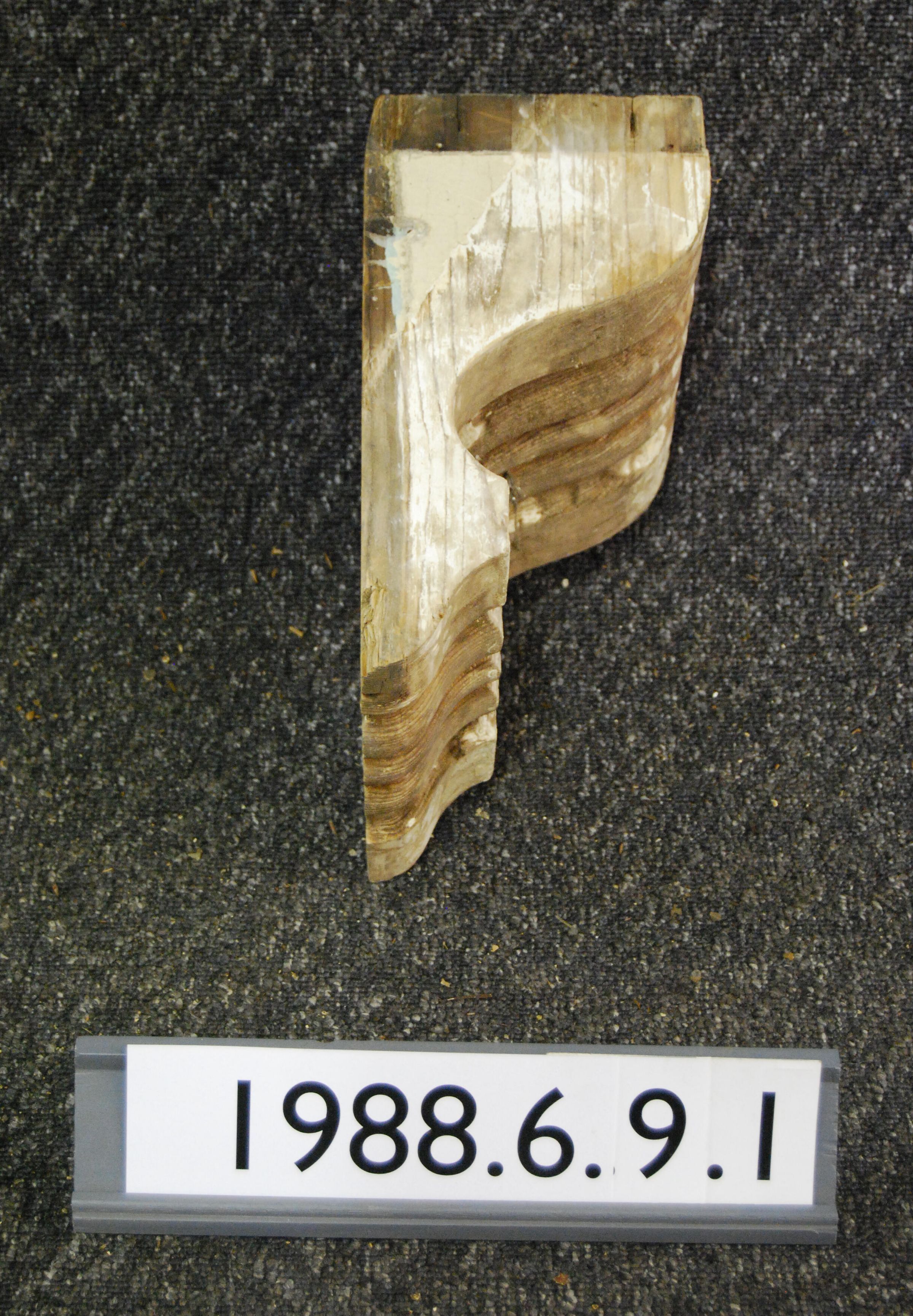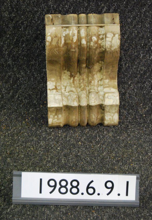 Wood bracket. Plain sides. Fluted/reeded front. Top moldings missing. Painted white. Inscriptions or Markings: Manufacturer: Place of Manufacturer: Design motif: Style: Finish: Painted