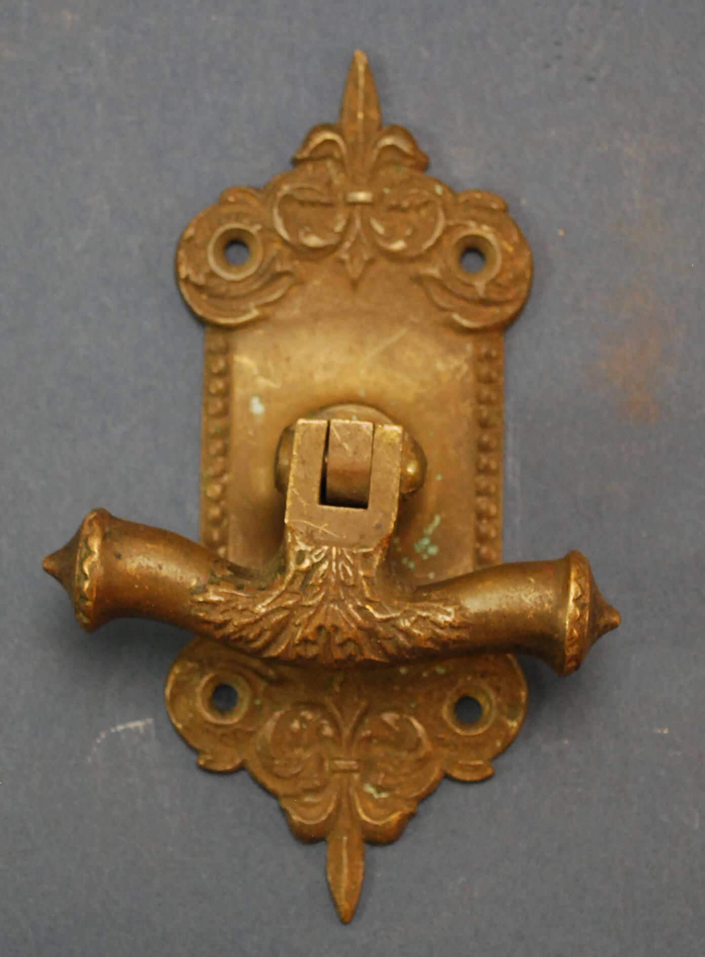 Design Name: Manufacturer: Unknown Style: Material: Bronze Manufacturing Method: Cast Surface Finish: Aged / Unpolished VDA Classification: VDA Number: Shape: Patent Specifics: Lock Type (If Applicable): Inscription/Makers Mark: Inscription Text: Comments: "T"- Handle with attached escutcheon.