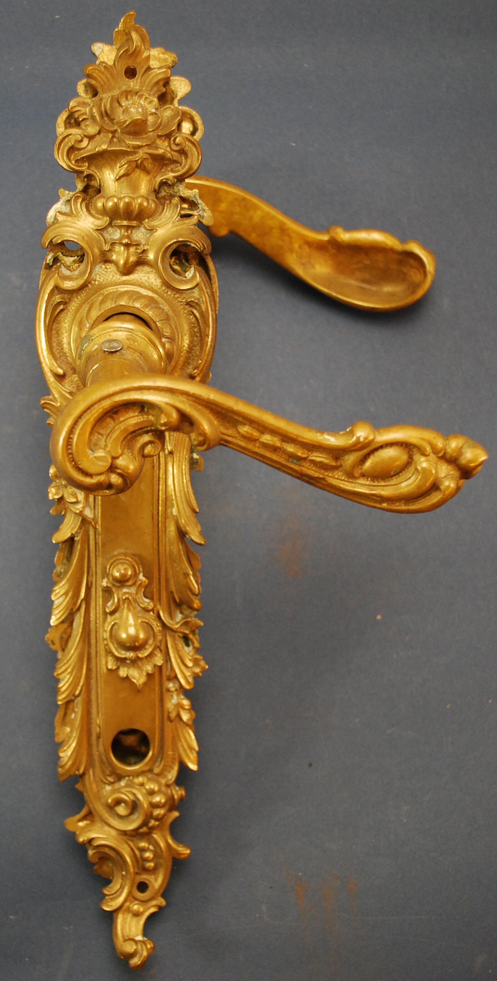 Comments: Probably French or other European origin. Includes two "L" shaped handles, two escutcheon plates. Illegible inscription on handles.Lexicon