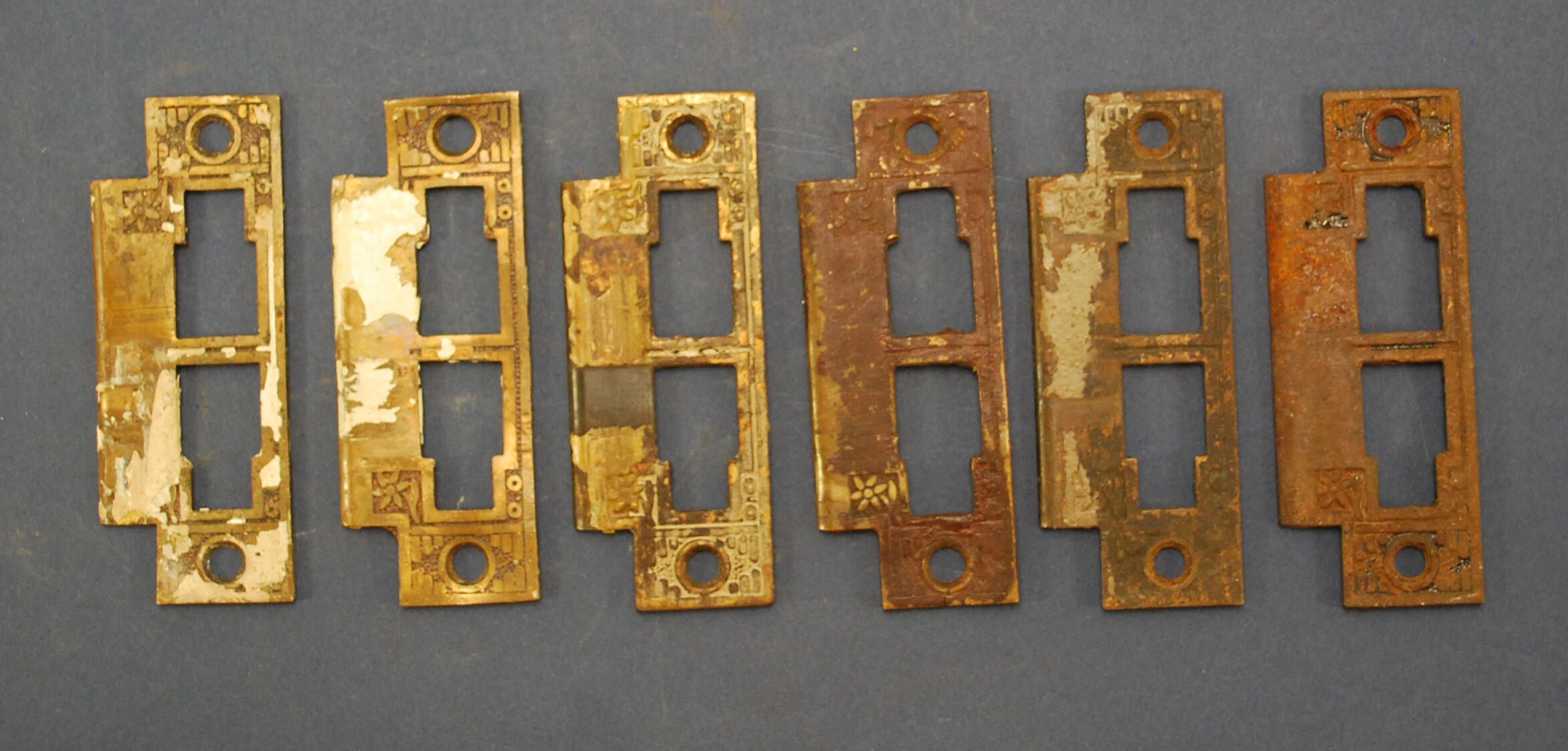 Comments: Irregular bolt opening. Three are steel, three are bronze. Matches 1988.3.1462
