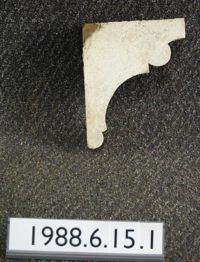 Wood bracket. Plain sides with compound contour. Fluting on front. Painted white. Inscriptions or Markings: Manufacturer: Place of Manufacturer: Design motif: Style: Finish: Painted