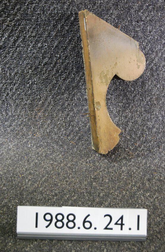 Wood bracket. Plain sides. Compound contour. Fluted front. Painted reddish brown. Inscriptions or Markings: Manufacturer: Place of Manufacturer: Design motif: Style: Finish: Painted