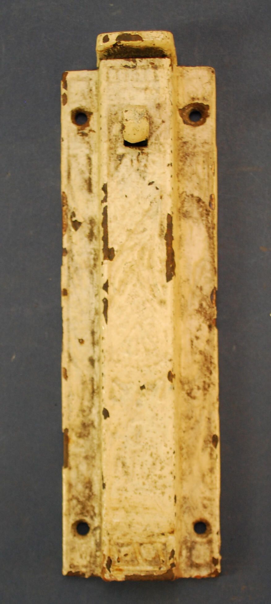 Comments: Rust, remnants of Japanned black later painted over. Bolt is truncated.