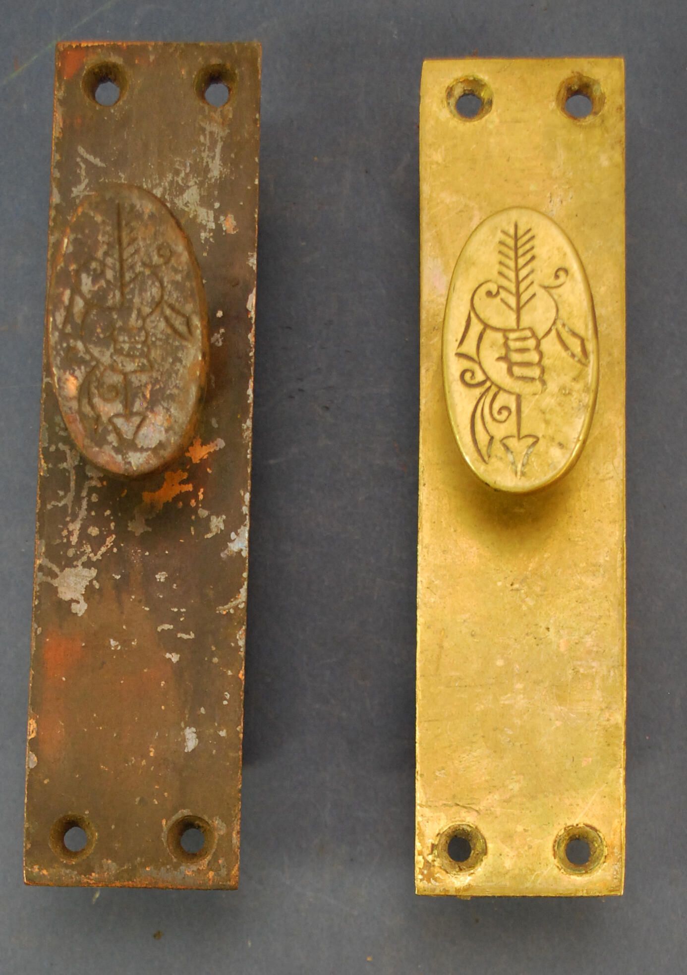 Comments: One is made of cast iron and is plated with antique copper finish, other is solid brass. See 1988.3.1518
