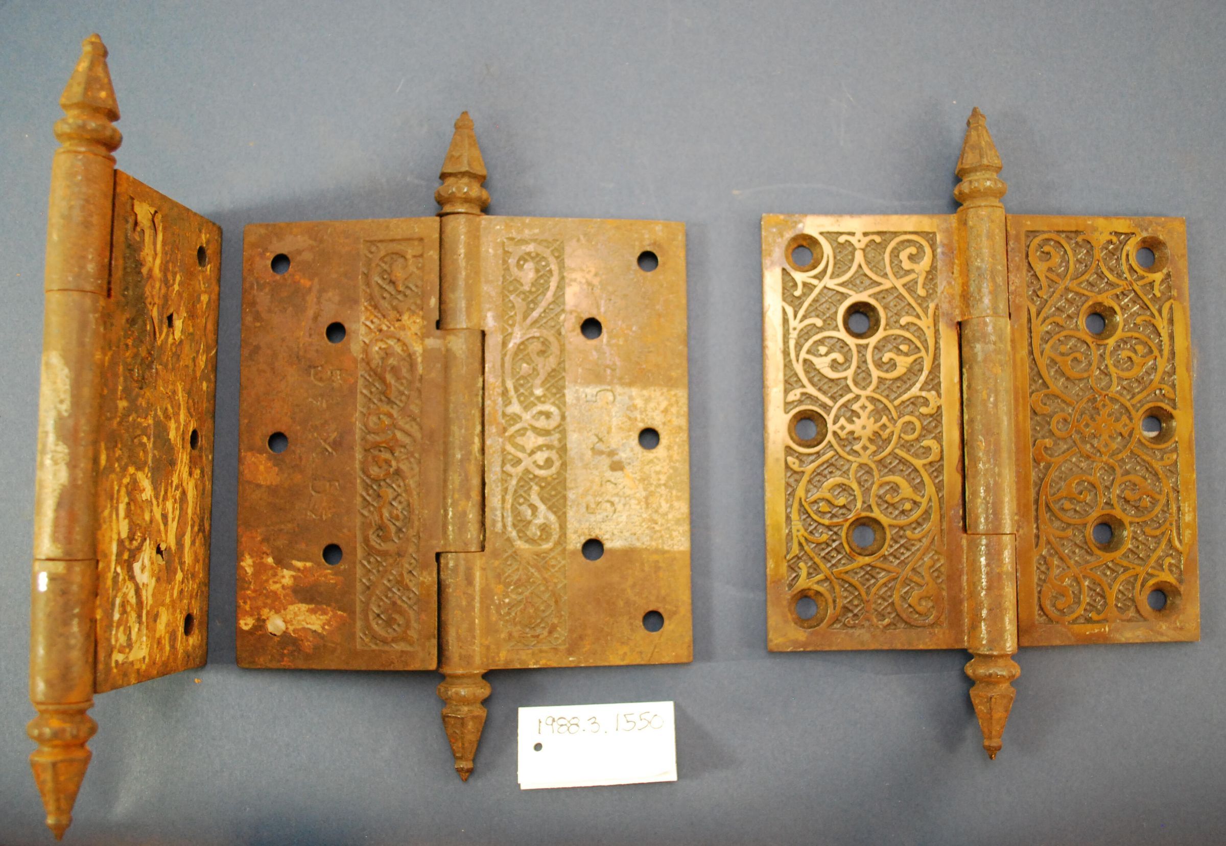 Design Name: Manufacturer: Unknown Style: Neo-Grec Material: Iron Manufacturing Method: Cast Surface Finish: Tinted Varnish VDA Classification: VDA Number: Shape: Patent Specifics: Lock Type (If Applicable): Inscription/Makers Mark: Inscription Text: 5 1/2 x 5 1/2 Comments: Fixed joint, steeple tipped.