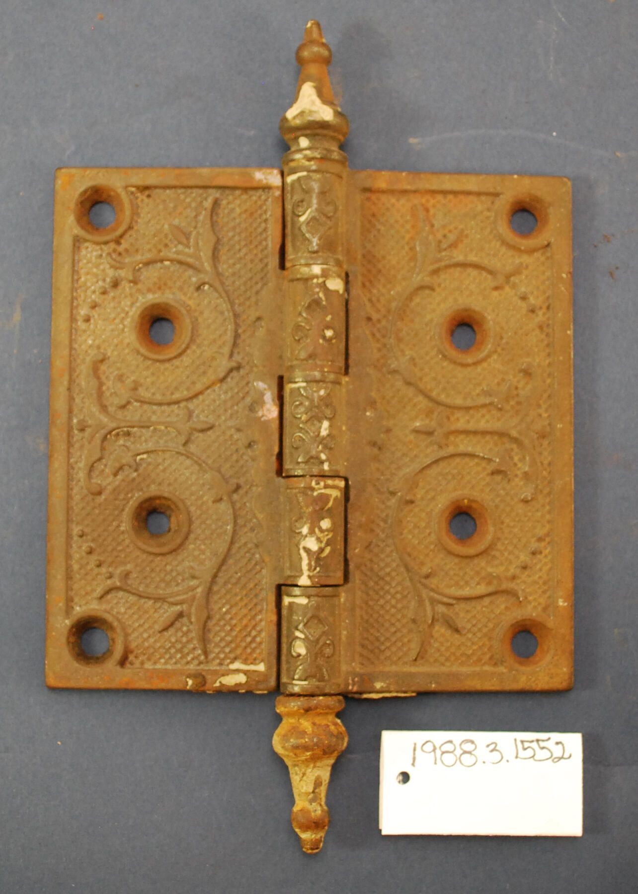 Design Name: Manufacturer: Unknown Style: Neo-Grec Material: Iron Manufacturing Method: Cast Surface Finish: Stripped / Aged / Unpolished VDA Classification: VDA Number: Shape: Patent Specifics: Lock Type (If Applicable): Inscription/Makers Mark: Inscription Text: 5 x 5 Comments: Steeple tipped, remnants of paint.