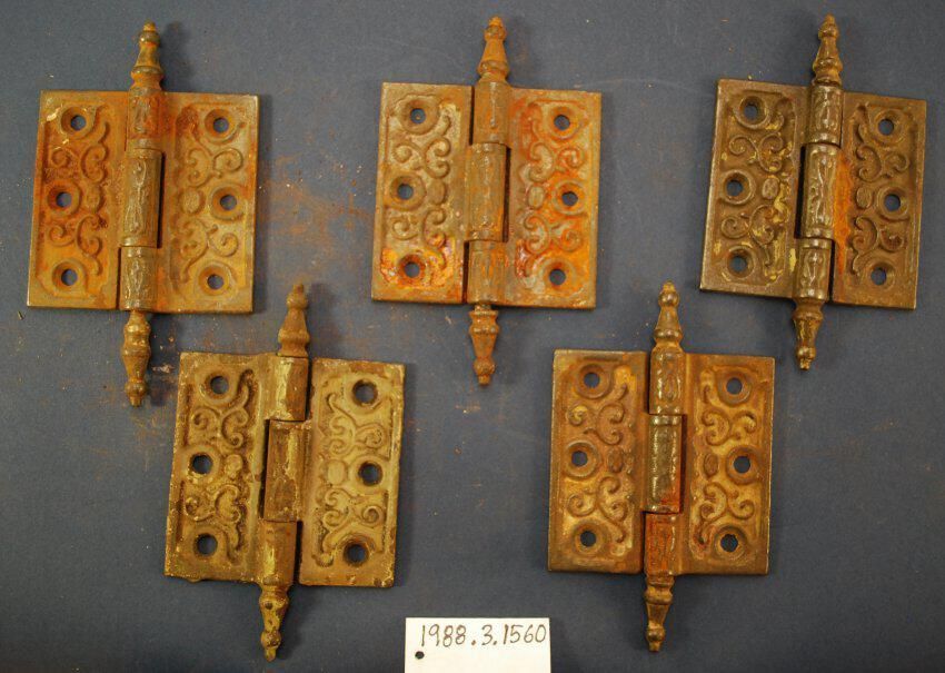 Design Name: Manufacturer: The Clark Mfg. Co. Style: Neo-Grec Material: Iron Manufacturing Method: Cast Surface Finish: VDA Classification: VDA Number: Shape: Patent Specifics: Lock Type (If Applicable): Inscription/Makers Mark: Inscription Text: 3 x 3 Comments: Fixed joint, steeple tipped. One is painted, remainder have no finish. See 1988.3.1557 1988.3.1558 1988.3.1559 1988.3.1561