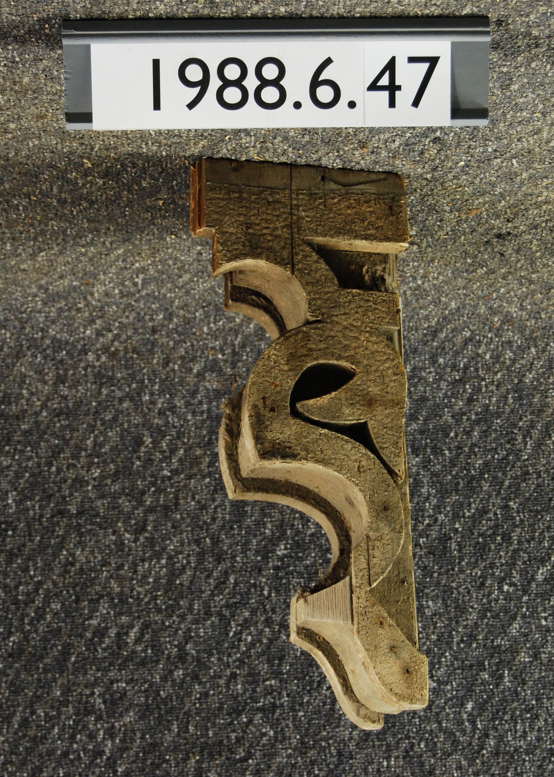 Wood bracket. Scrolled sides. Missing front. Painted beige. Inscriptions or Markings: Manufacturer: Place of Manufacturer: Design motif: Style: Finish: Painted