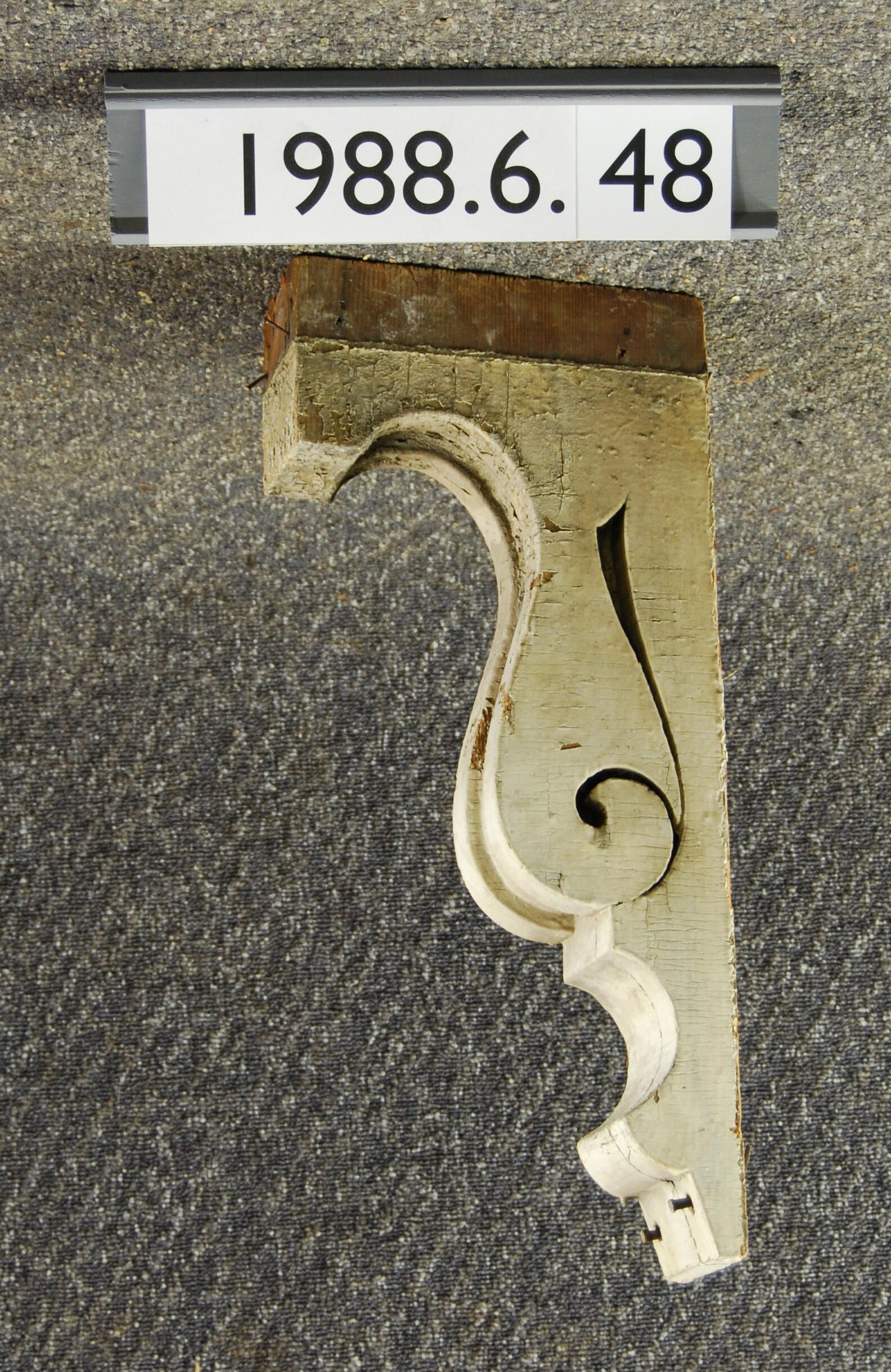 Wood bracket. Scrolled sides. Painted white. Inscriptions or Markings: Manufacturer: Place of Manufacturer: Design motif: Style: Finish: Painted