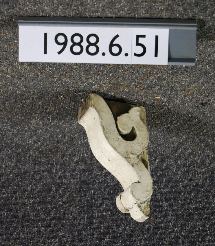 Wood bracket. Scrolled sides. Small piece missing from side. Painted white. Inscriptions or Markings: Manufacturer: Place of Manufacturer: Design motif: Style: Finish: Painted