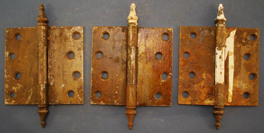 Design Name: Manufacturer: Unknown Style: Material: Steel Manufacturing Method: Wrought / stamped Surface Finish: Varnished VDA Classification: VDA Number: Shape: Patent Specifics: Lock Type (If Applicable): Inscription/Makers Mark: Inscription Text: Comments: Fixed joint, steeple tipped; rusty.