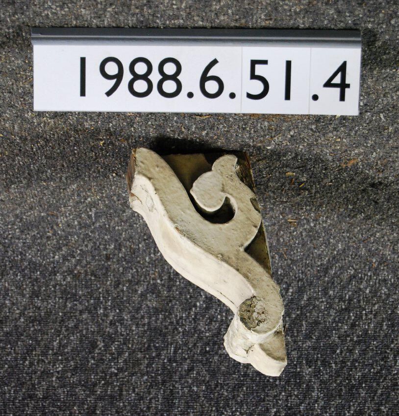 Wood bracket. Scrolled sides. Painted white. Inscriptions or Markings: Manufacturer: Place of Manufacturer: Design motif: Style: Finish: Painted
