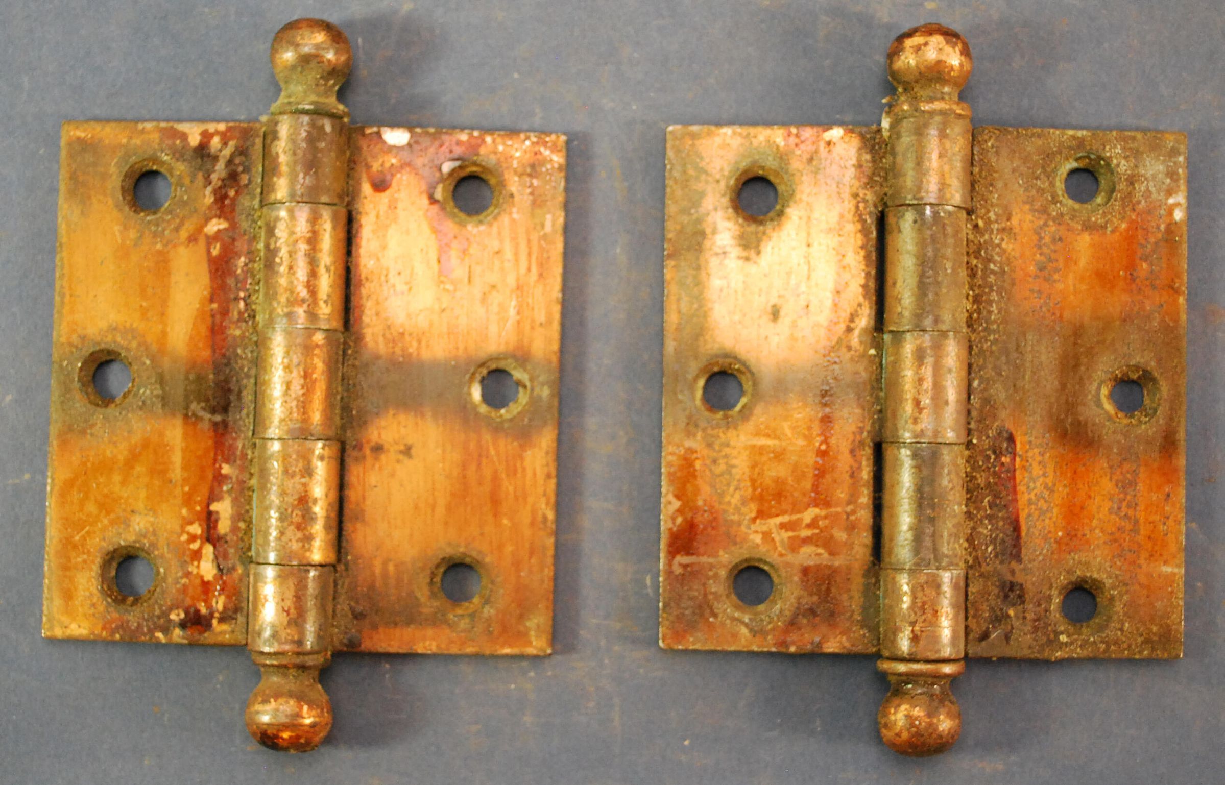 Design Name: Manufacturer: Unknown Style: Material: Steel Manufacturing Method: Wrought / Stamped Surface Finish: Plated, antique copper VDA Classification: VDA Number: Shape: Patent Specifics: Lock Type (If Applicable): Inscription/Makers Mark: Inscription Text: Comments: Fixed joint, ball tipped, 3 1/2 x 3 1/2.