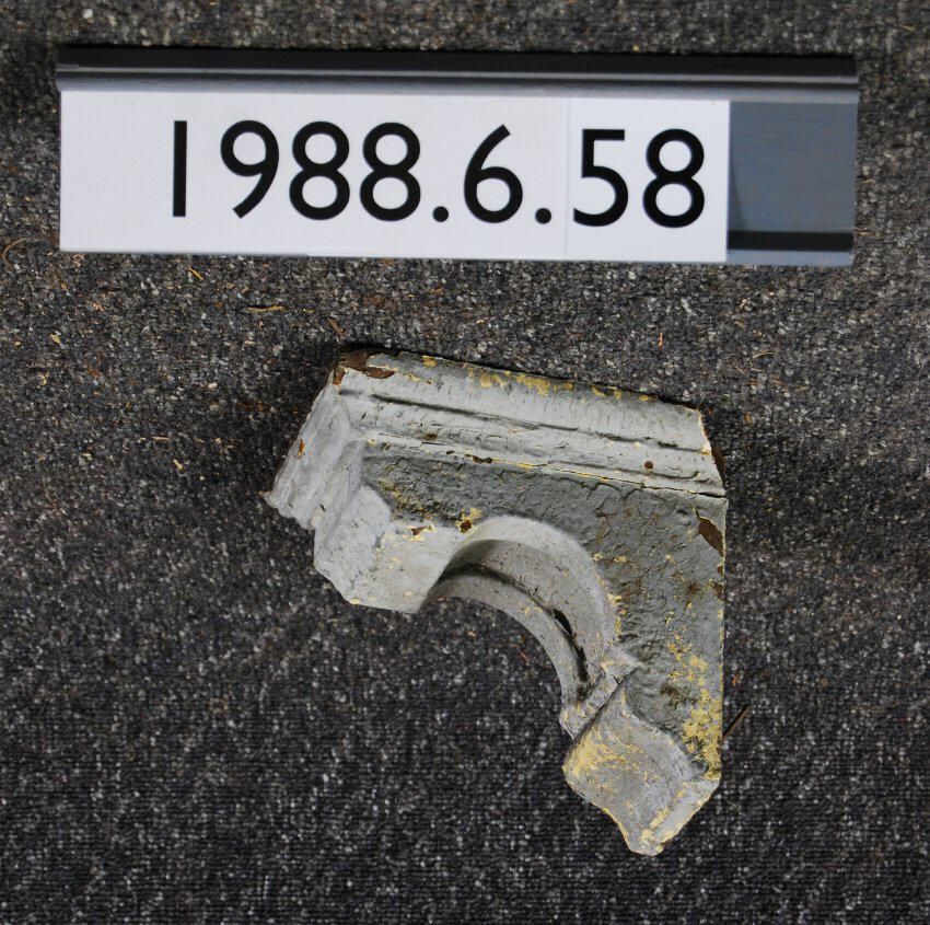 Wood bracket. Moldings at top. Painted grey. Inscriptions or Markings: Manufacturer: Place of Manufacturer: Design motif: Style: Finish: Painted