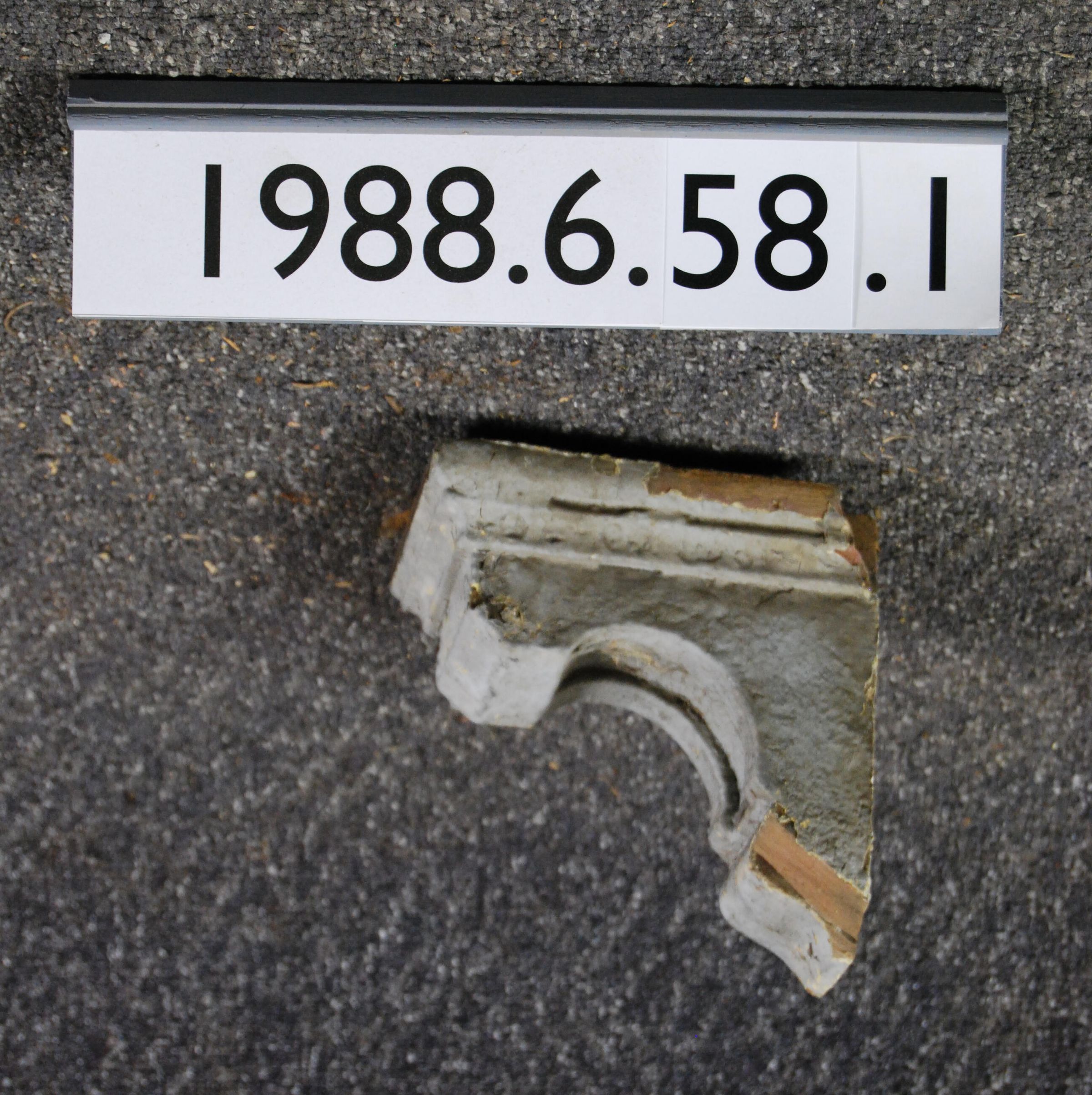 Wood bracket. Moldings at top missing. Small piece of body missing. Painted grey. Inscriptions or Markings: Manufacturer: Place of Manufacturer: Design motif: Style: Finish: Painted