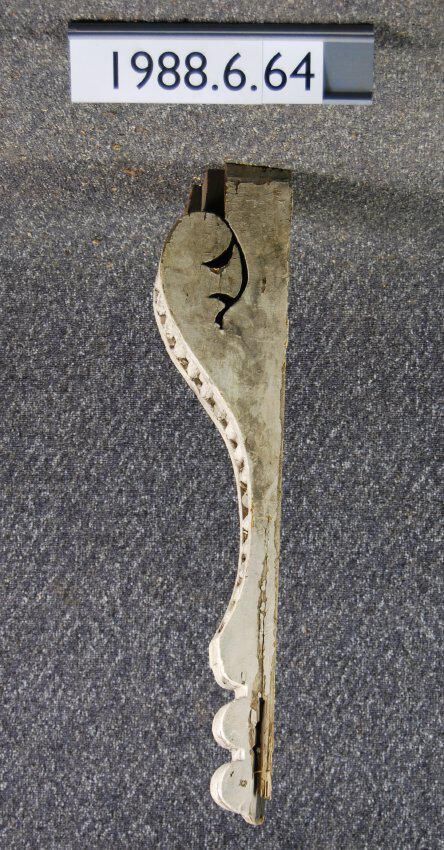 Wood bracket. Scrolled sides. Front has horizontal rib ornament. Painted pinkish beige. Inscriptions or Markings: Manufacturer: Place of Manufacturer: Design motif: Style: Finish: Painted
