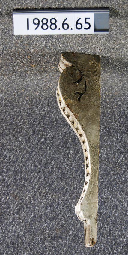 Wood bracket. Scrolled sides. Front has horizontal ribbing ornament. Painted pinkish beige. Inscriptions or Markings: Manufacturer: Place of Manufacturer: Design motif: Style: Finish: Painted