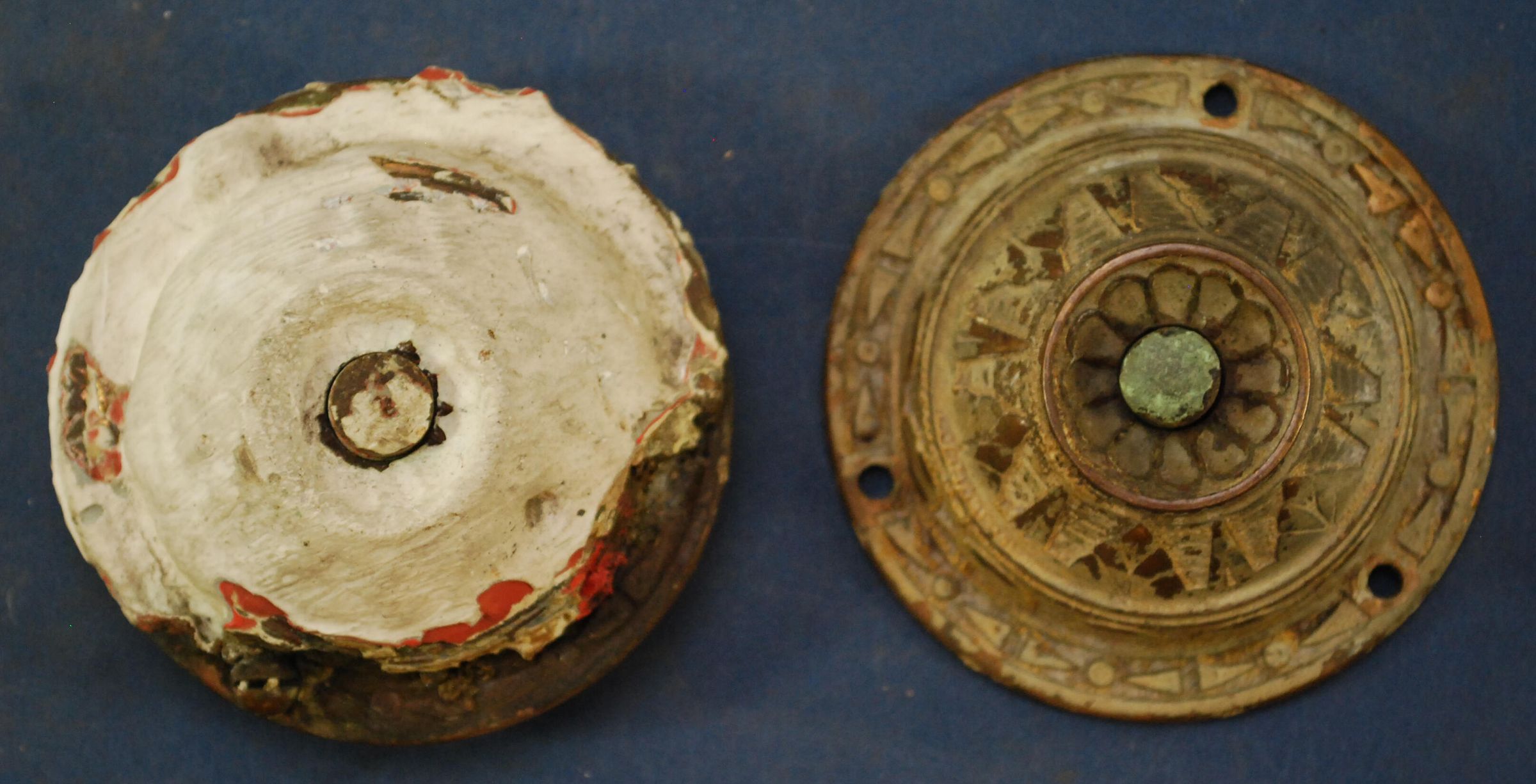 Comments: Electric door bell, both later painted over, one has original switch, both have buttons.Lexicon