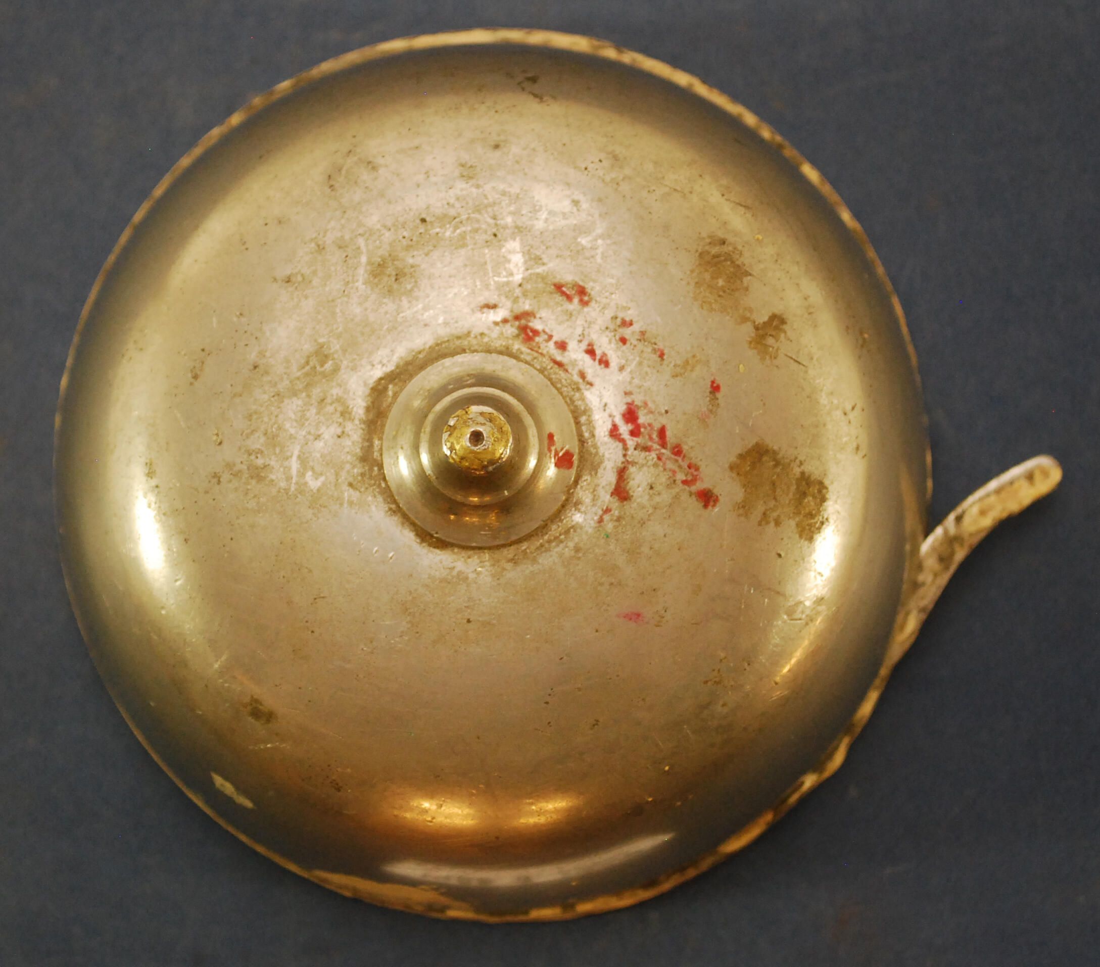 Design Name: Manufacturer: Unknown Style: Material: Iron / Brass Manufacturing Method: Wrought / Cast Surface Finish: Plated, Nickel VDA Classification: VDA Number: Shape: Patent Specifics: Lock Type (If Applicable): Inscription/Makers Mark: Inscription Text: Comments: Wind-up spring-loaded mechanism with gears. Cast iron base, nickel-plated brass bell.