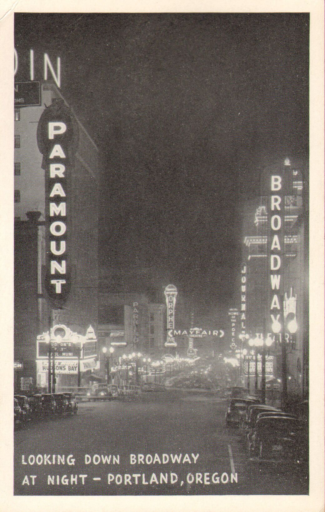 Building/location:Looking down Broadway at night Subject Matter:Street Image process:rppc Architect: Building Description: List of Drawings in set: