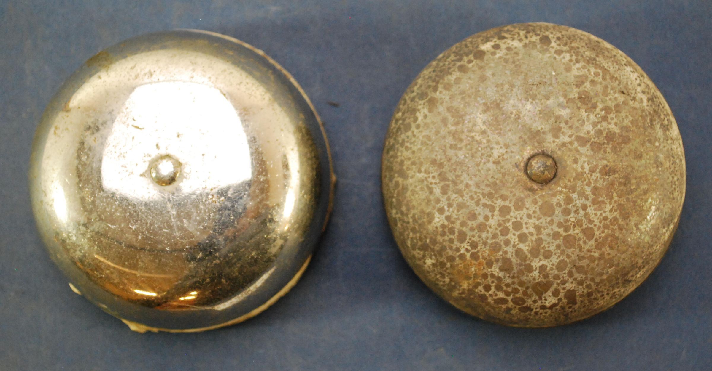 Design Name: Manufacturer: Unknown Style: Material: Manufacturing Method: Wrought / Stamped / Cast Surface Finish: Plated, Nickel VDA Classification: VDA Number: Shape: Patent Specifics: Lock Type (If Applicable): Inscription/Makers Mark: Inscription Text: 012 Comments: One in good condition, the other has been burnt / brazed. Twist-gear mechanism.